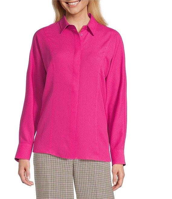 Investments Dolman Long Sleeve Button Front Point Collar Blouse