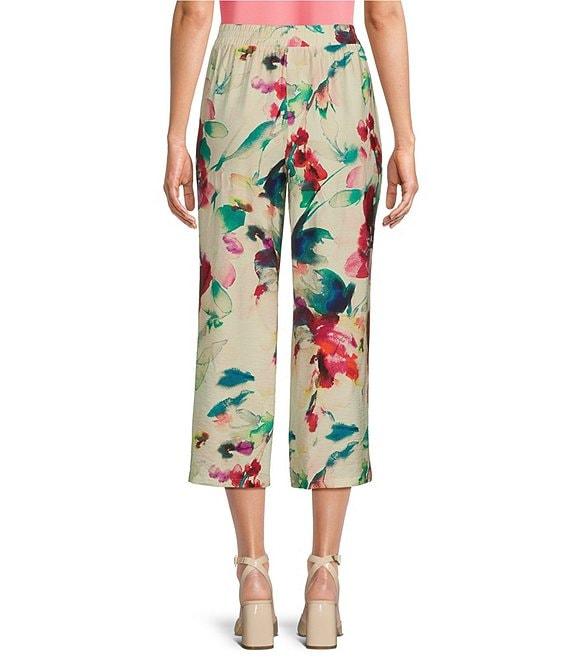 From Investments, these pants feature: Pull-on construction Crop length Flat front Approx. 25" inseam Rayon/nylon Machine wash/tumble dry Imported.