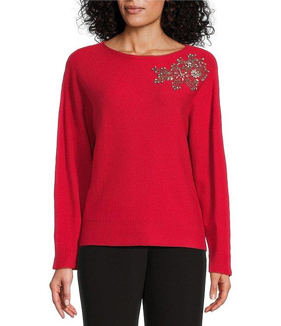 Investments Haute Embellished Long Sleeve Boat Neck Sweater