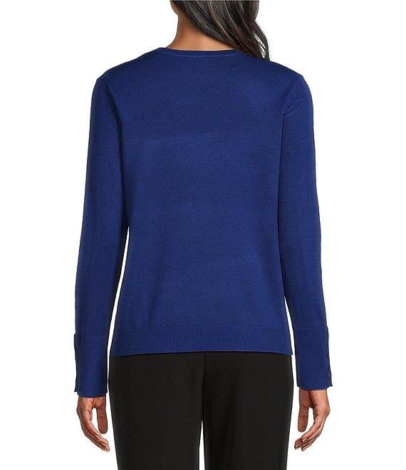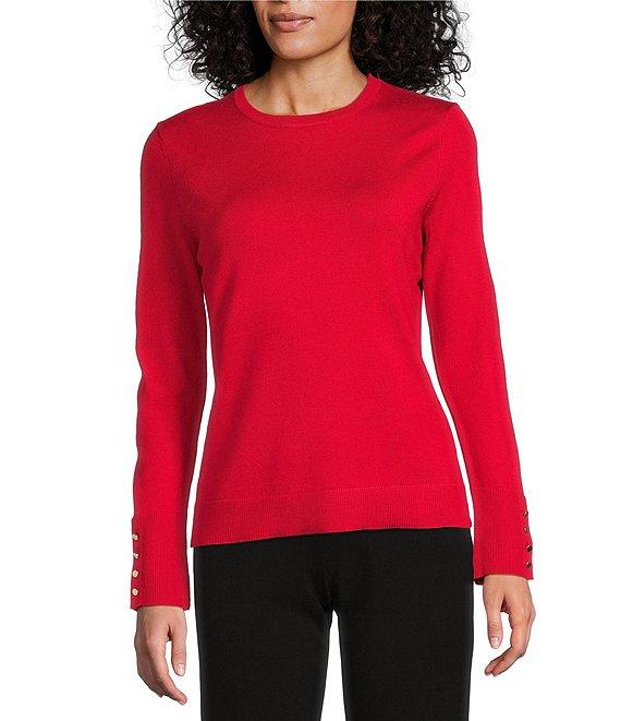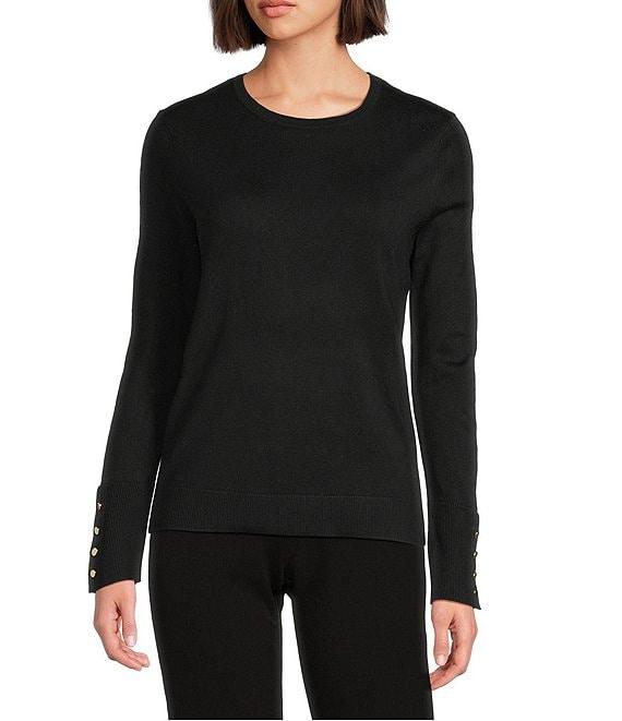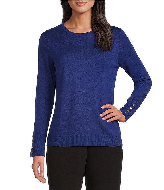 Investments Long Sleeve Button Cuff Crew Neck Sweater