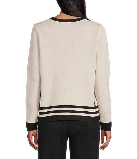 Investments Petite Border Stripe Long Sleeve Crew Neck Pullover Top