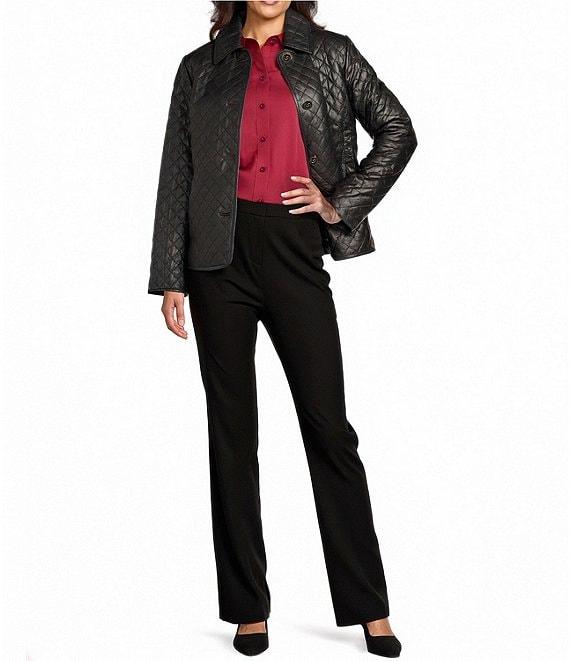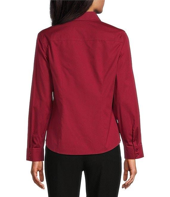 From Investments, this top features: Long sleeves Point collar neckline Full button front closure Cotton/polyester/spandex Machine wash/tumble dry Imported.
