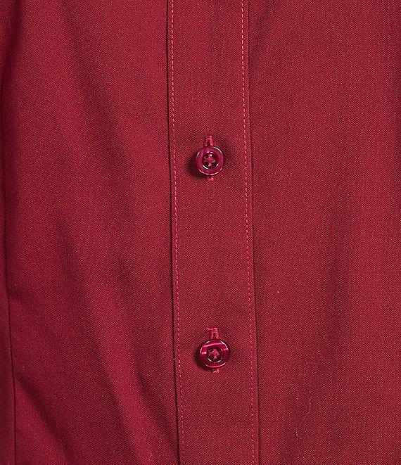Investments Petite Rumba Red Woven Long Sleeve Point Collar Button Front Top