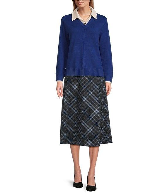 Investments Petite Size Bellwether Plaid Pull-On A-Line Midi Skirt