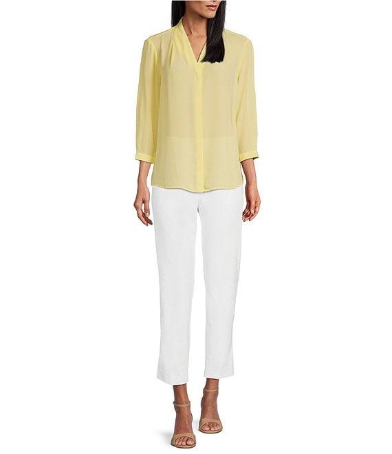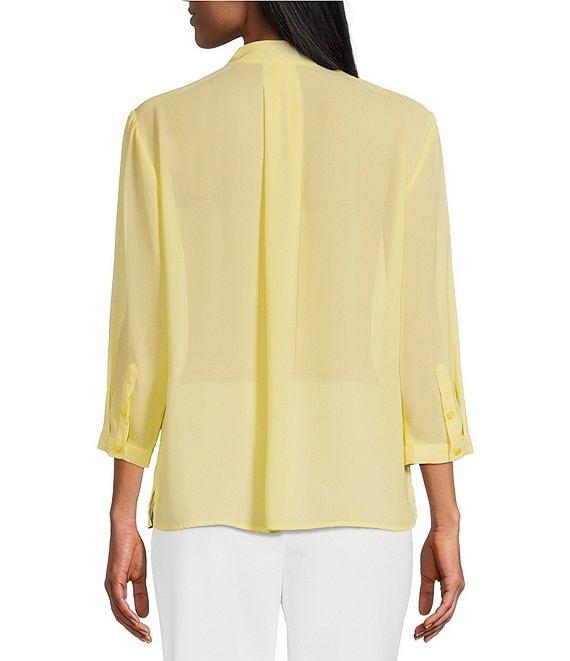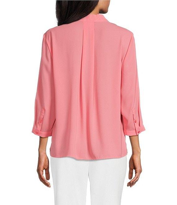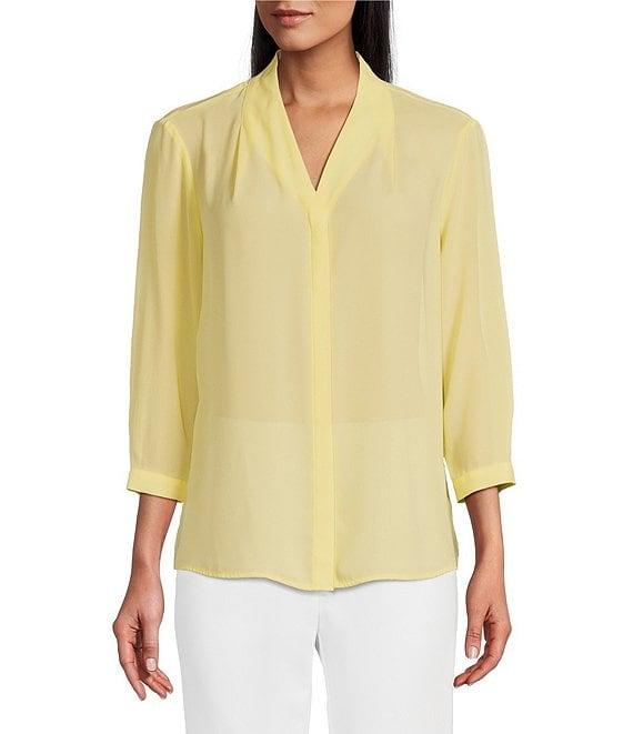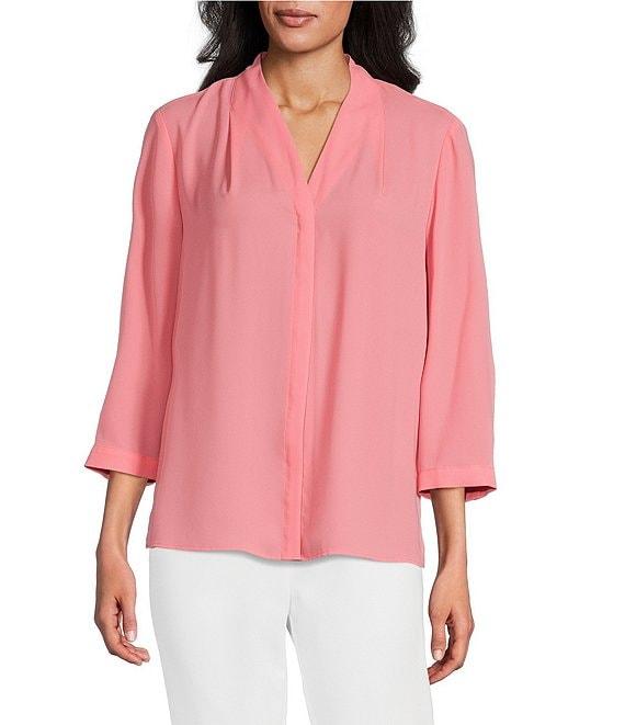 Investments Petite Size Caroline Signature V-Neck 3/4 Sleeve Button Front Blouse