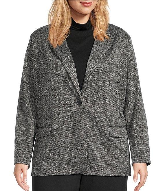 Investments Plus Melange Long Sleeve One Button Notch Lapel Blazer