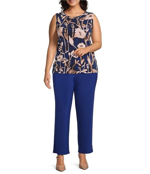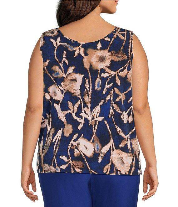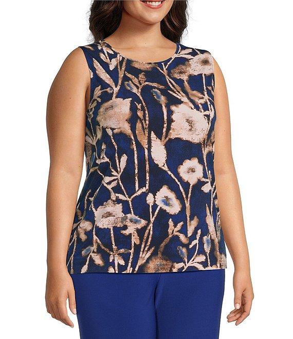 Investments Plus Size Bellwether Blue Falling Foliage Crew Neck Sleeveless Top