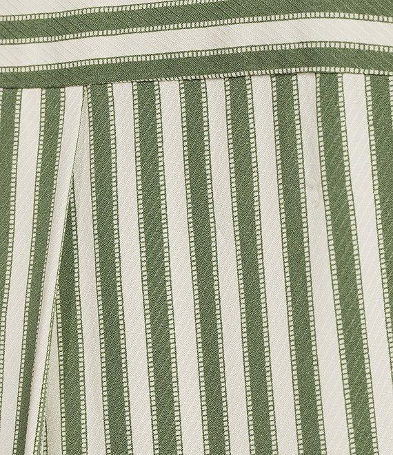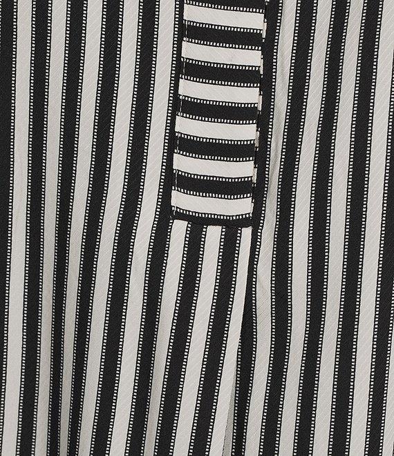 Investments Plus Size Nora Stripe Long Sleeve Y-Neck Drapey Twill Blouse