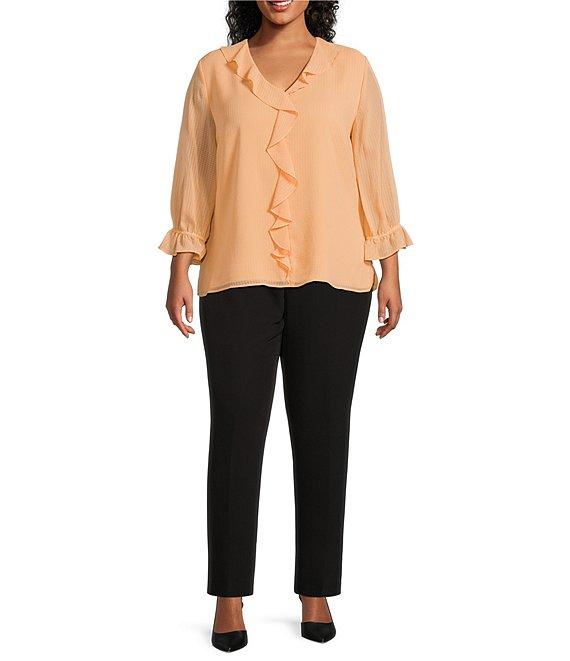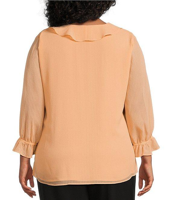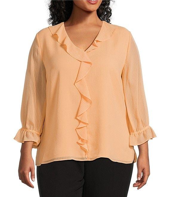 Investments Plus Size Riley Woven Cascading Ruffle V-Neck 3/4 Sleeve Top