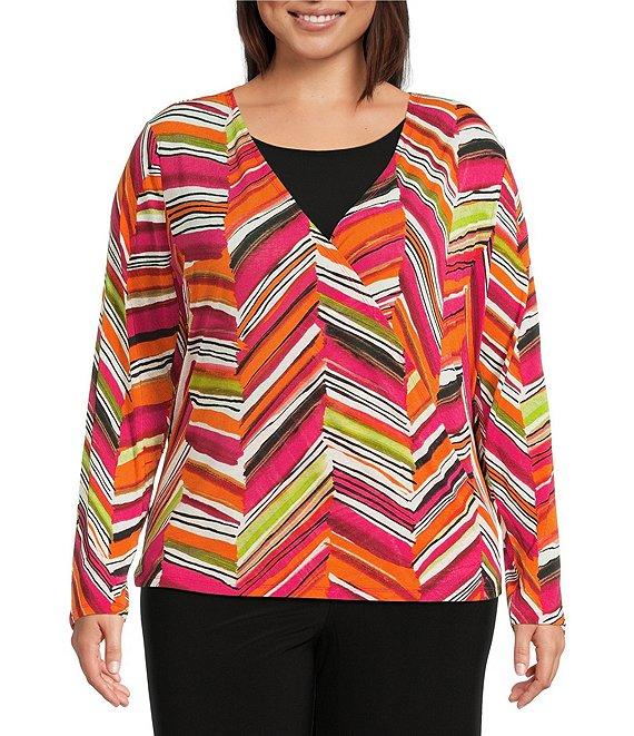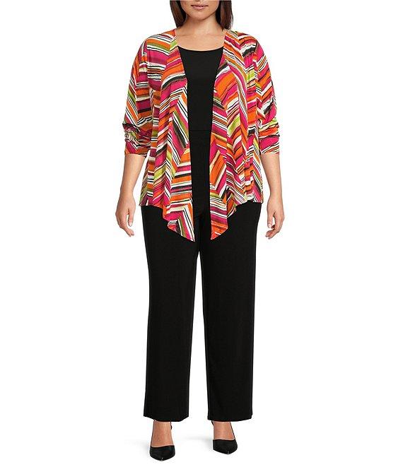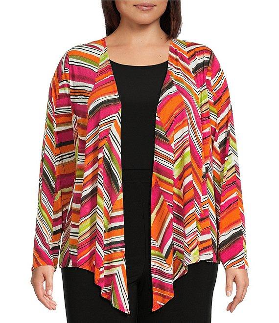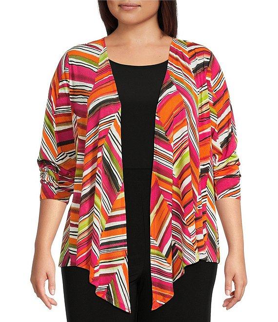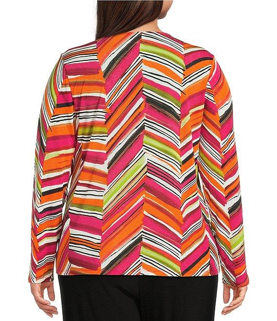 Investments Plus Size Soft Separates Multi Broken Chevron Long Sleeve Coordinating Topper