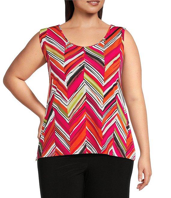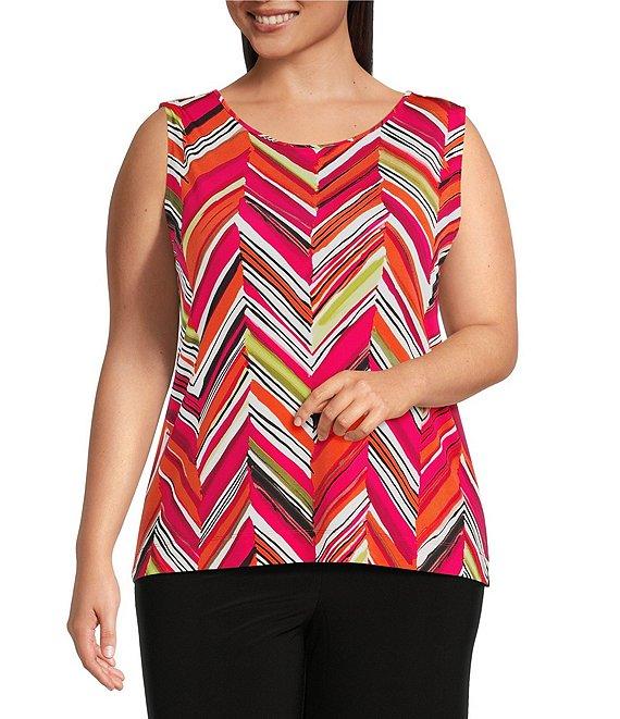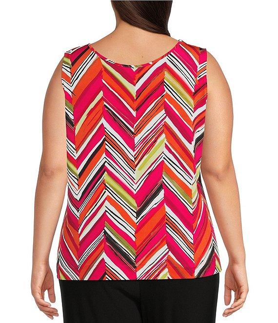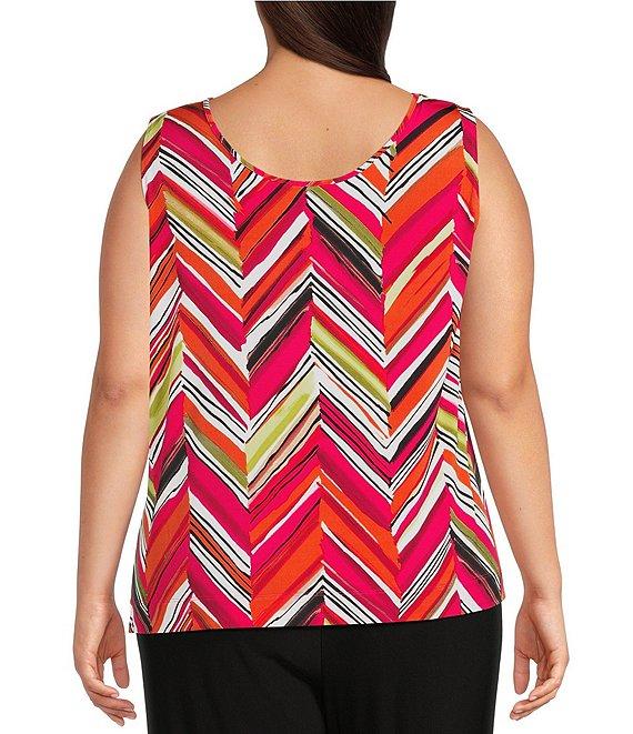 Investments Plus Size Soft Separates Multi Broken Chevron Reversible Crew to Scoop Neck Sleeveless Top
