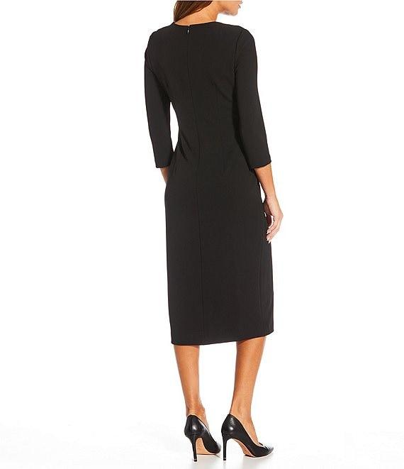 Investments Scuba Crepe 3/4 Sleeve Faux Button Front Sheath Dress