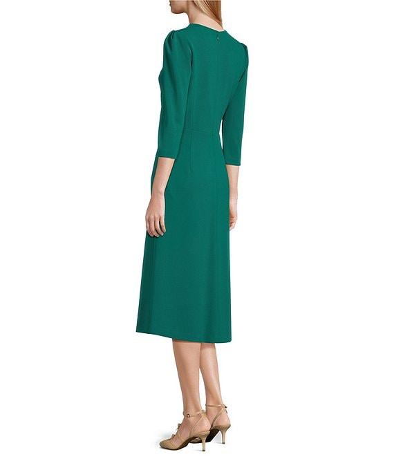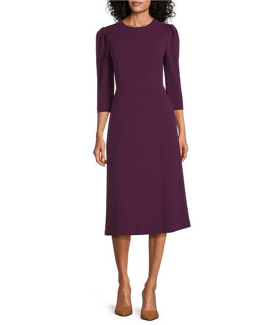 From Investments Dresses, this dress features: Scuba crepe fabrication 3/4 sleeves Crew neckline Fit and flare silhouette Partial back zip Hook and eye Flattering seams On seam pockets Lined Approx. 47.5" length Polyester/spandex Machine wash / tumble dry Imported.