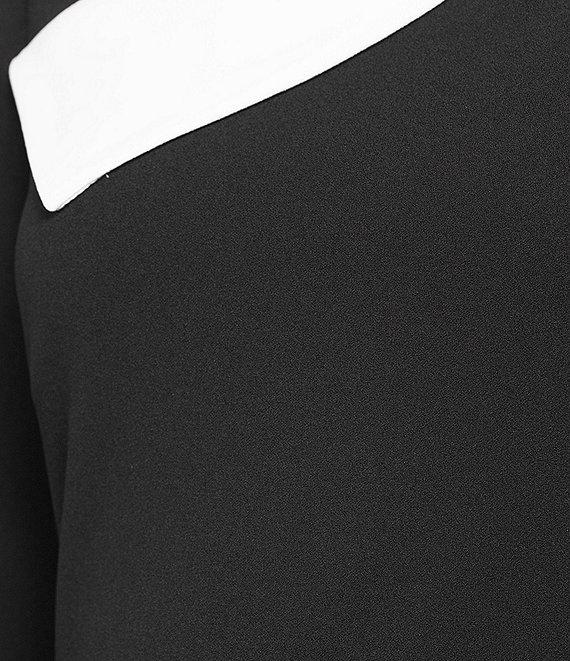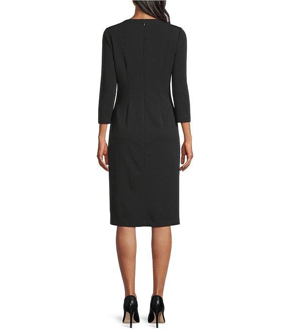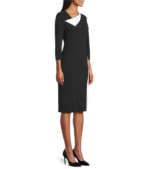 Investments Scuba Crepe Black White Color Block 3/4 Sleeve Envelope Neck Sheath Dress