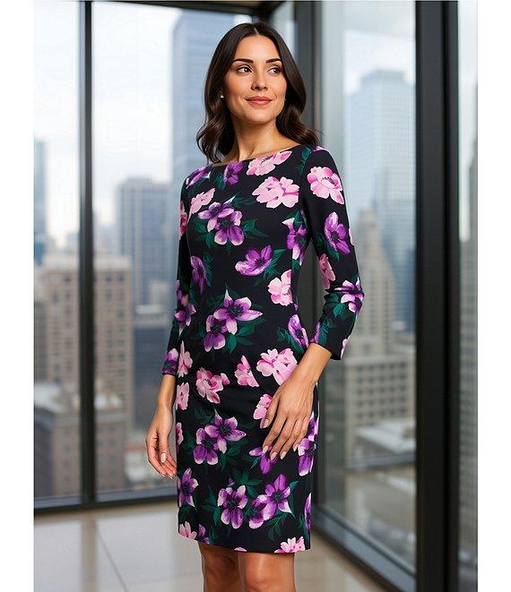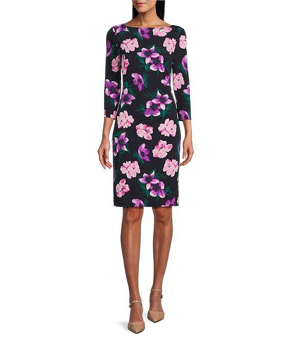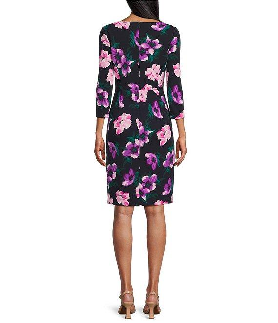 From Investments Dresses, this dress features: Scuba crepe fabrication 3/4 Sleeve Ballet neckline Sheath silhouette Hidden back zip, hook and eye closure Lined Back vent Approx. 40" length Polyester/Spandex Machine Wash / Tumble Dry Imported.