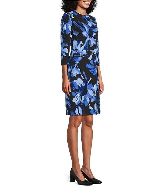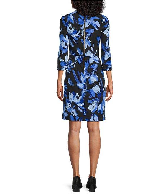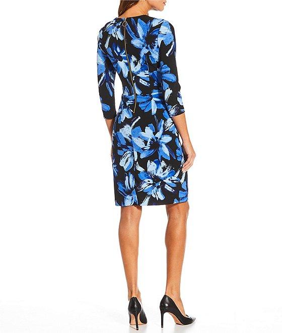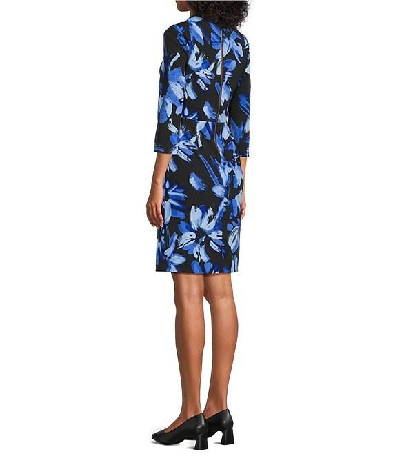 Investments Scuba Crepe Floral 3/4 Sleeve Crew Neck Sheath Dress