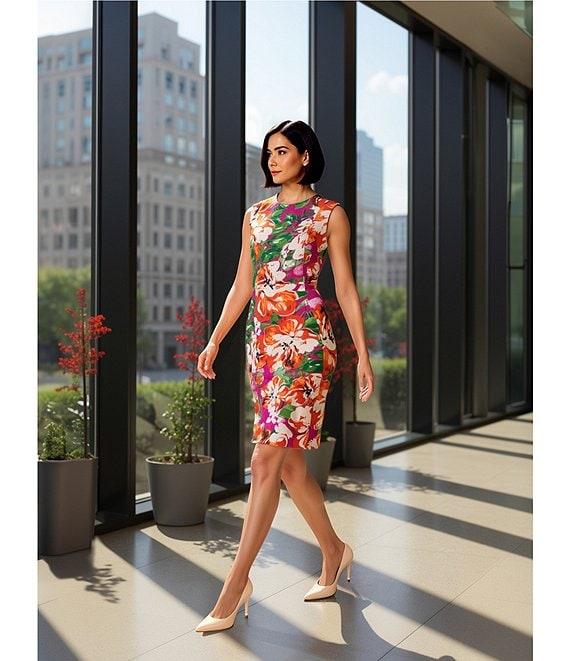 Investments Scuba Crepe Floral Print Sleeveless Sheath Dress