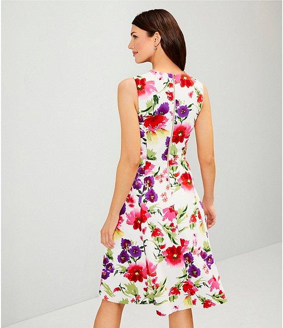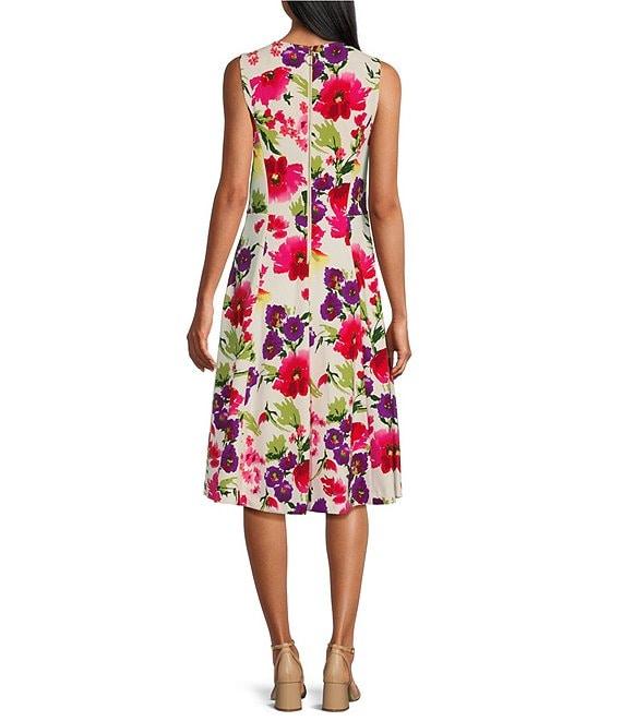 Investments Scuba Crepe Multi Floral Sleeveless Fit and Flare Midi Dress Product Image