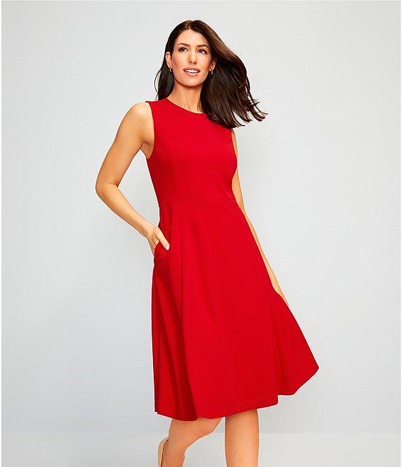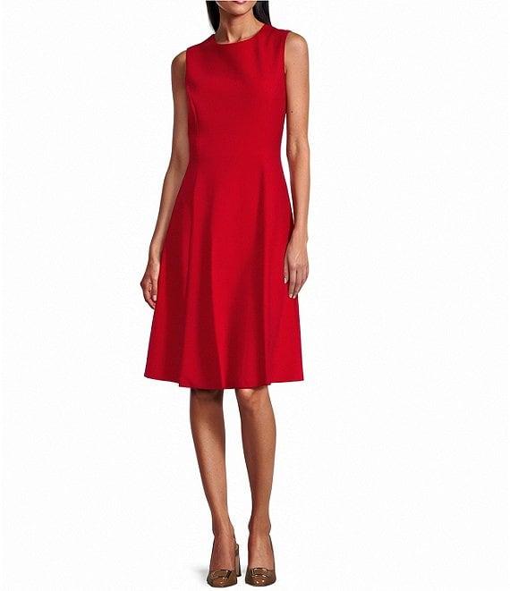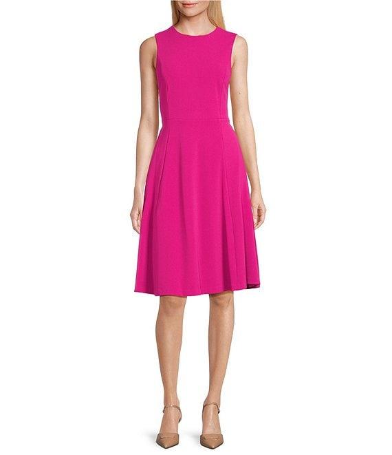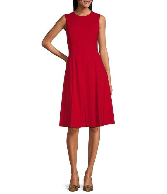 From Investments Dresses, this dress features: Scuba Crepe fabrication Sleeveless Crew neckline Fit and flare silhouette Partial back zip Flattering seams On seam pockets Lined Approx. 43" length Polyester/spandex Machine wash/tumble dry Imported.