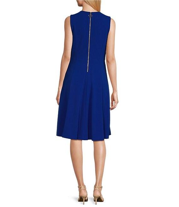 From Investments Dresses, this dress features: Scuba Crepe fabrication Sleeveless Crew neckline Fit and flare silhouette Partial back zip Flattering seams On seam pockets Lined Approx. 43" length Polyester/spandex Machine wash/tumble dry Imported.