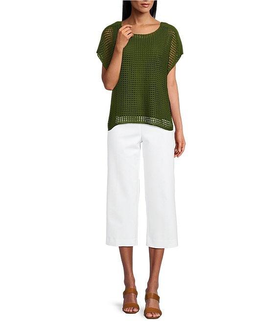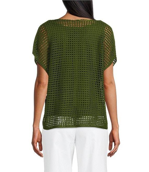 Investments Short Sleeve Crew Neck Open Stitch Top