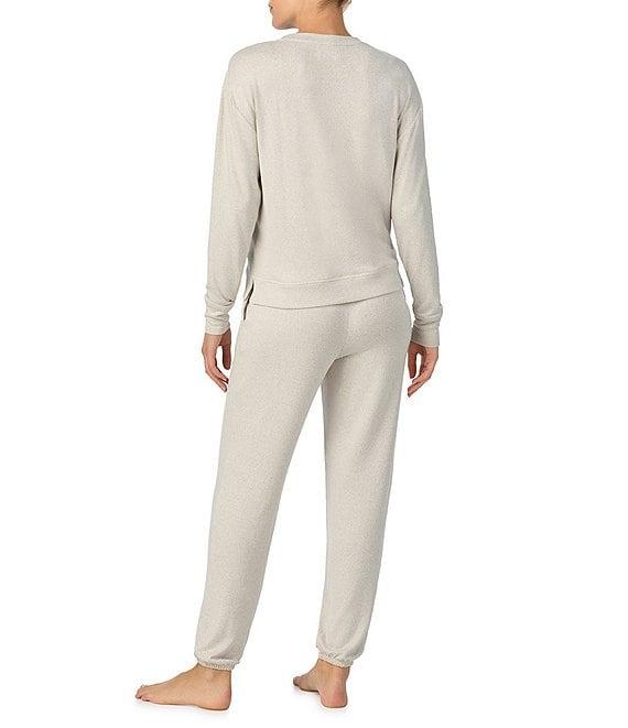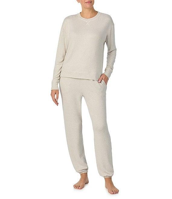 From iRelax, this lounge set features: Top: Knit fabrication Crew neckline Long sleeves Pullover construction Approx. 23.5" length Polyester/spandex Machine wash cold/tumble dry low Bottom: Matching pant Knit fabrication Elastic waistband Pull-on construction Approx. 29" inseam Polyester/spandex Machine wash cold/tumble dry low Imported.
