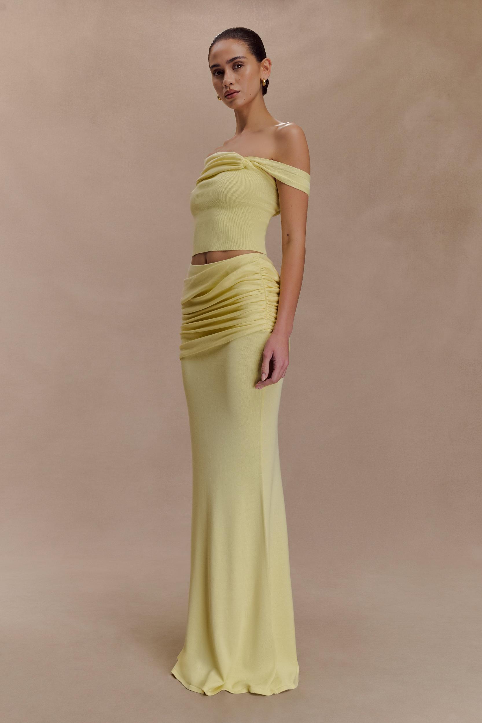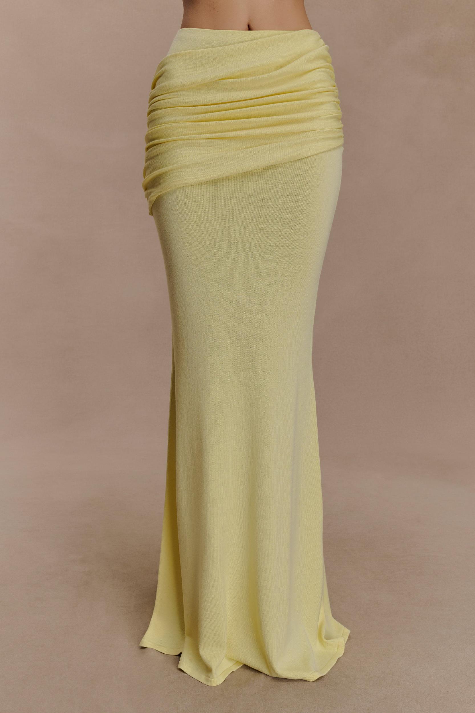 Irene Gathered Knit Maxi Skirt - Lemon