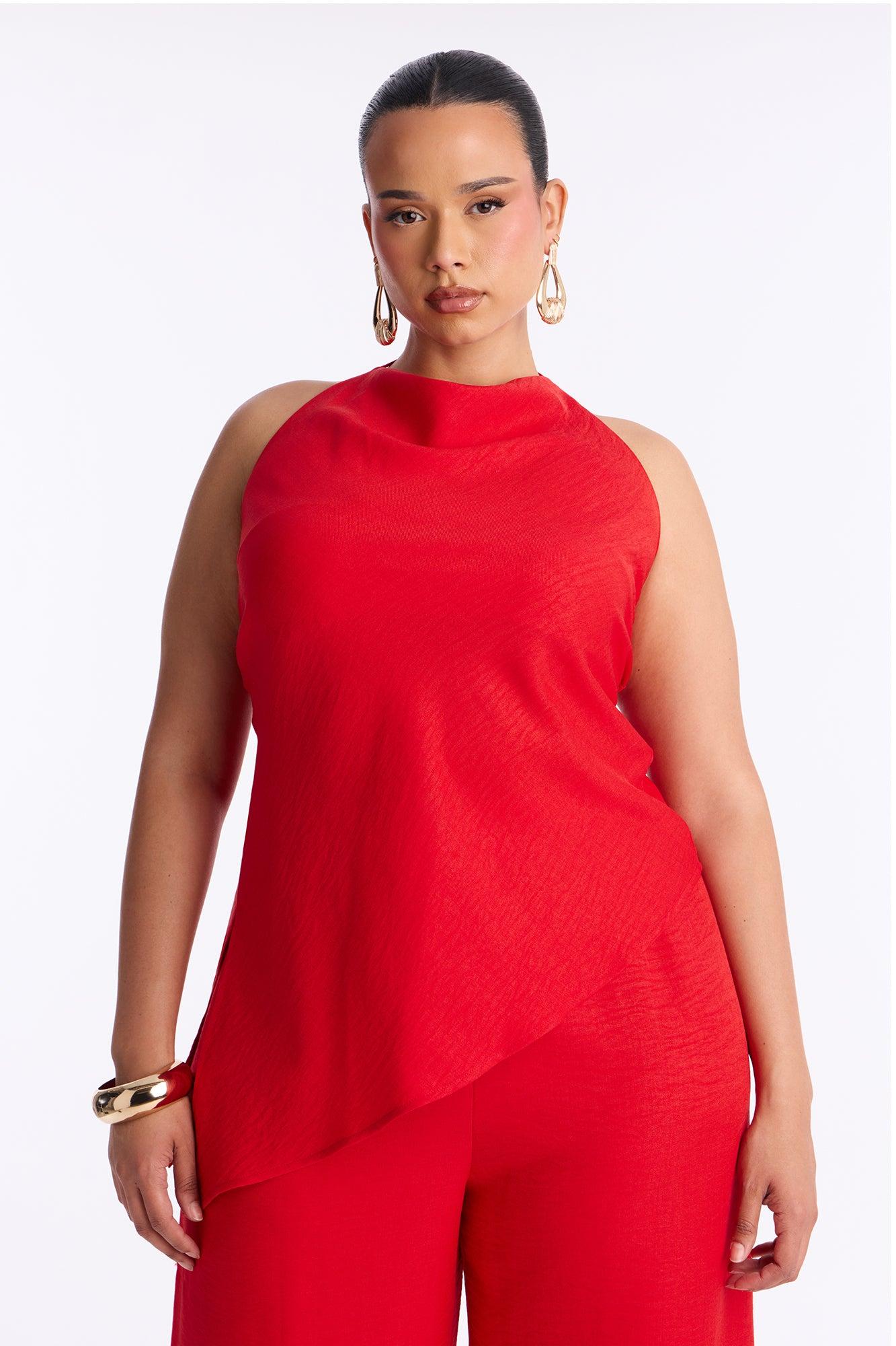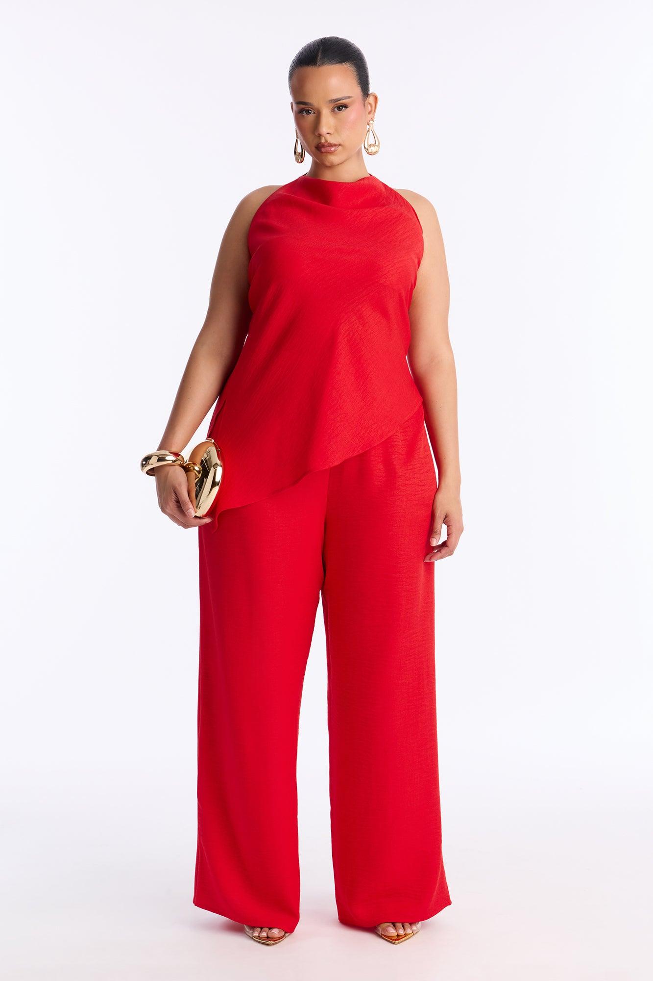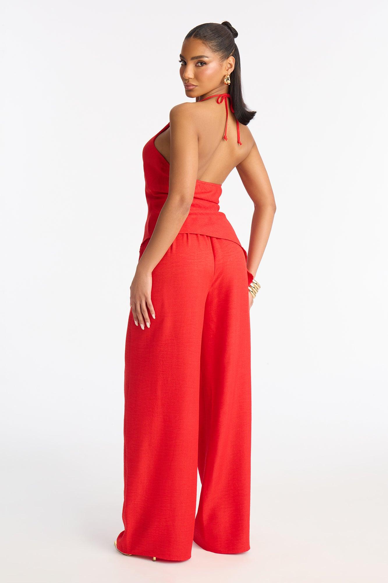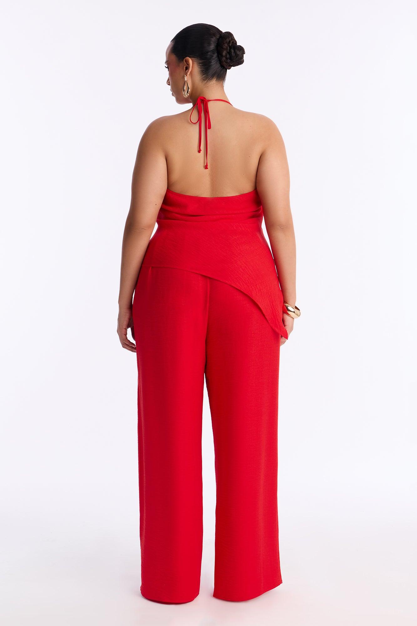 Irene Halter Asymmetrical Pant Set - Red Female