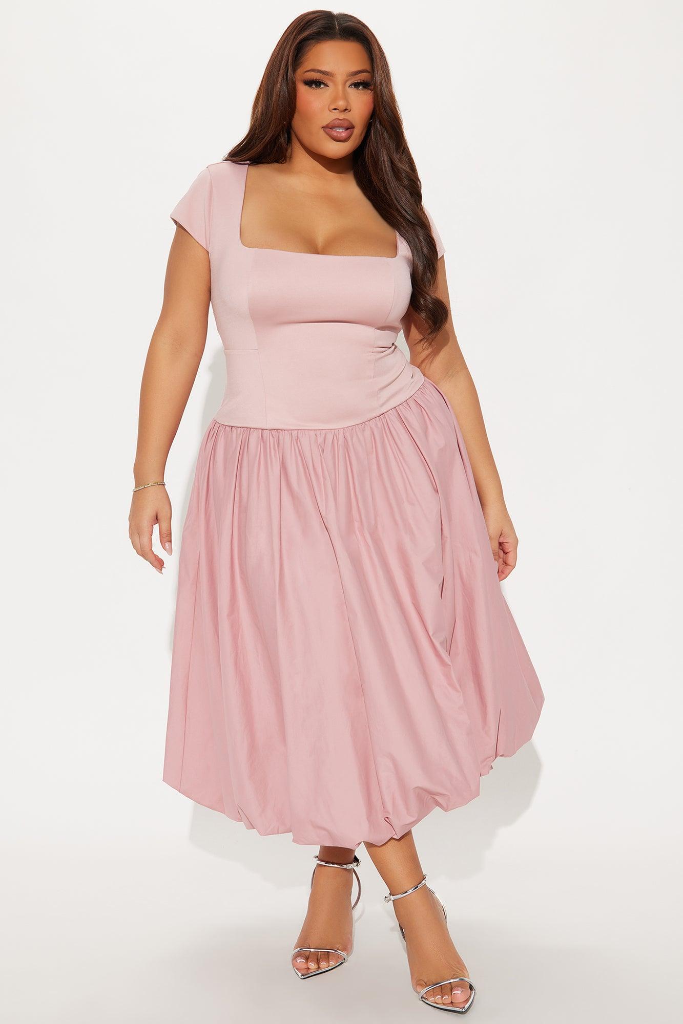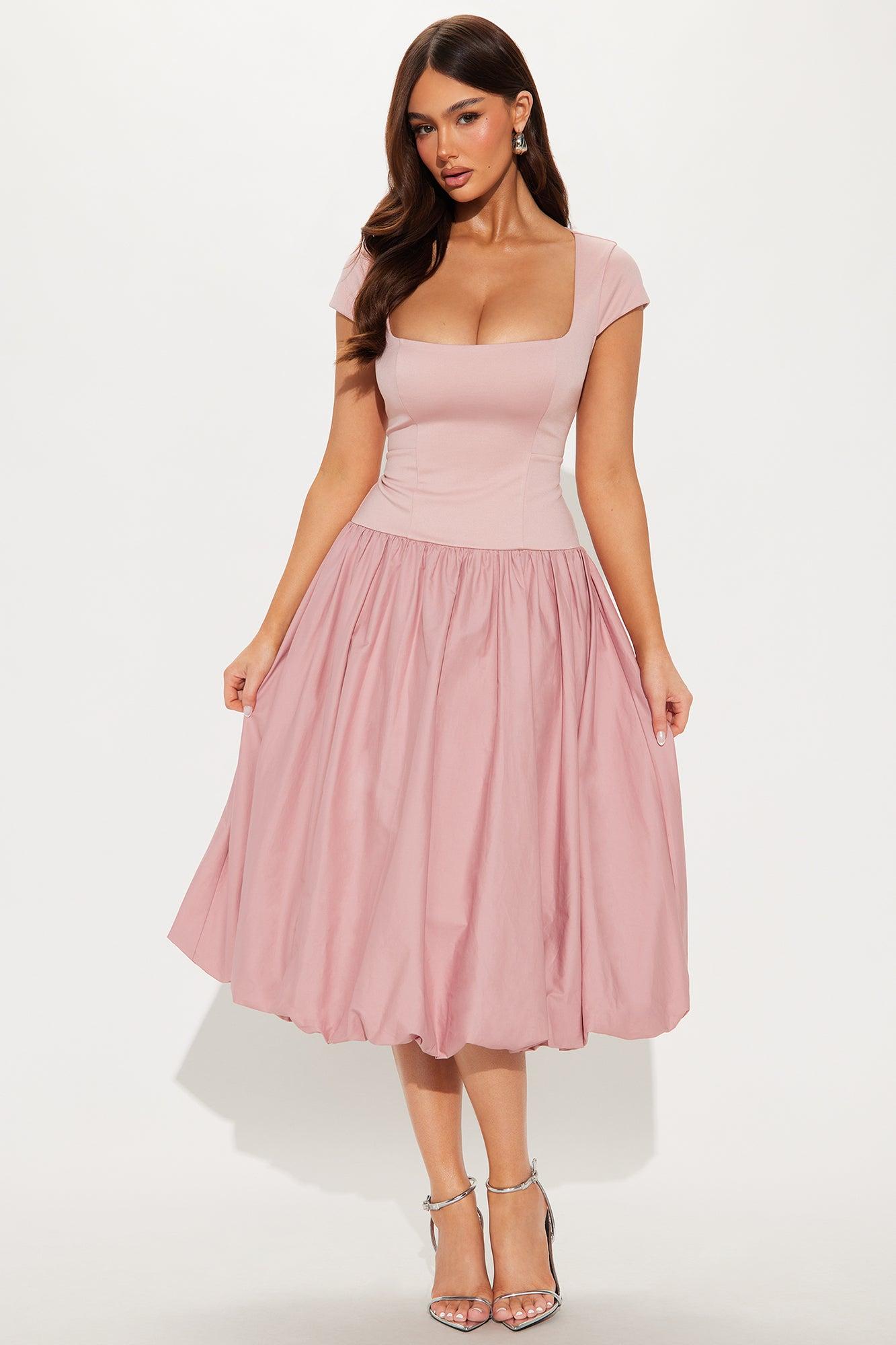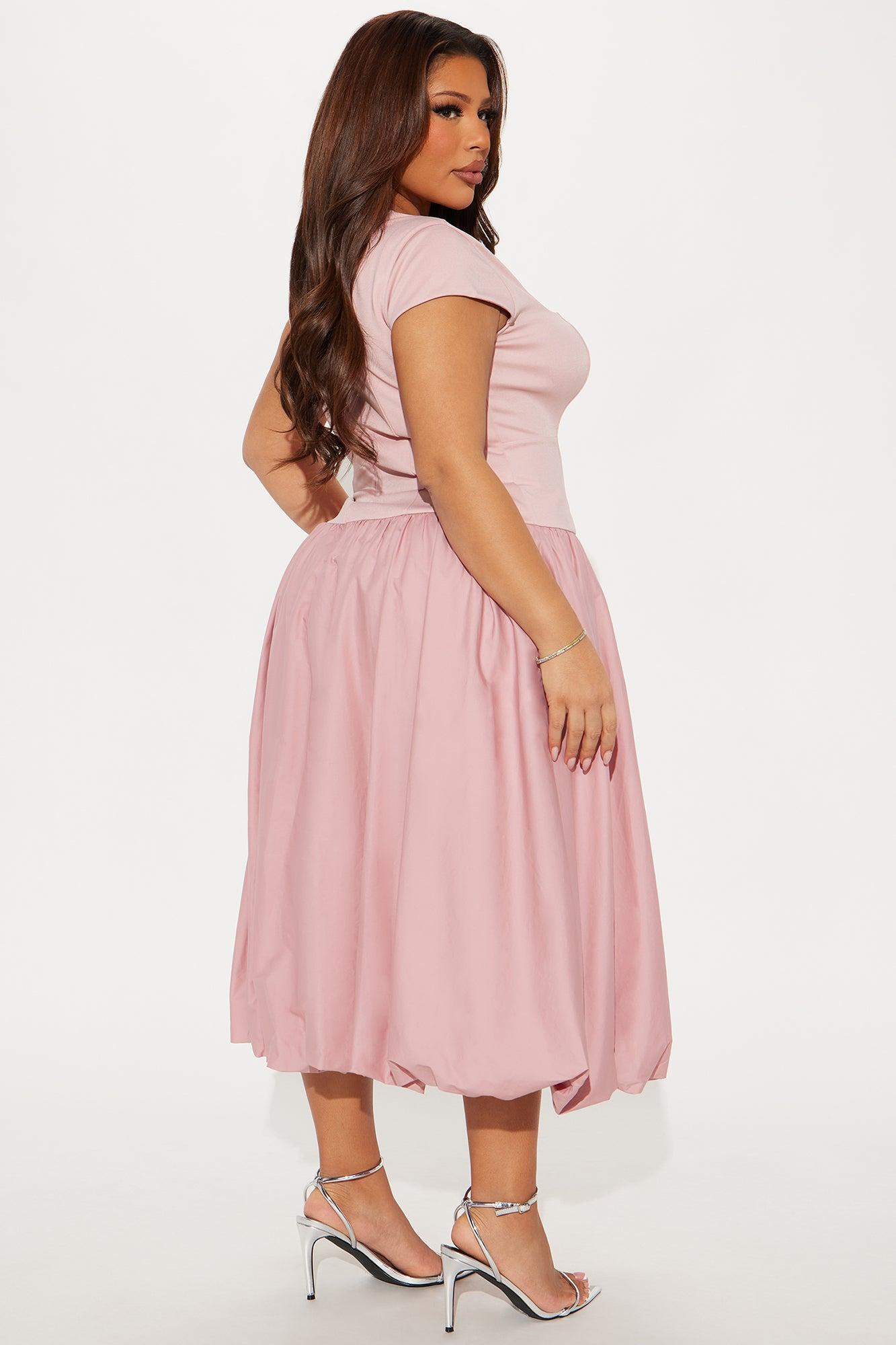 Irene Poplin Bubble Midi Dress - Mauve
