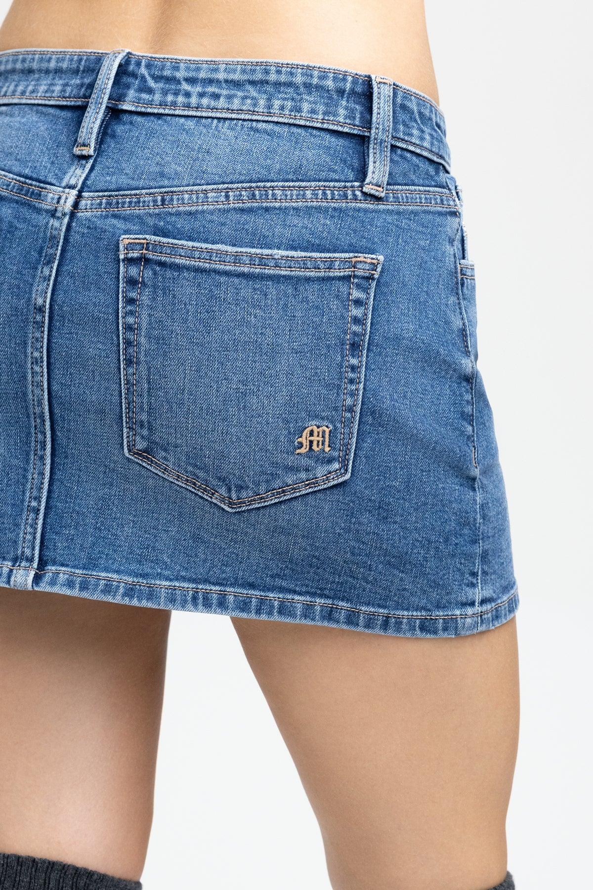 Washed, low-rise mini skirt- Embroidered mini Gothic Miss Me logo- Worn-in pocket edge detailing- Whiskering details- 5-pocket designModel is wearing size: 25Model Measurements:Height: 5'9"Bust: 34BWaist: 25"Hips: 36"Fabric Content: 99% Cotton, 1% ElastaneCare: Gentle machine wash inside-out with like colors in cold water. Tumble dry low.Style No. L1074N-M1018