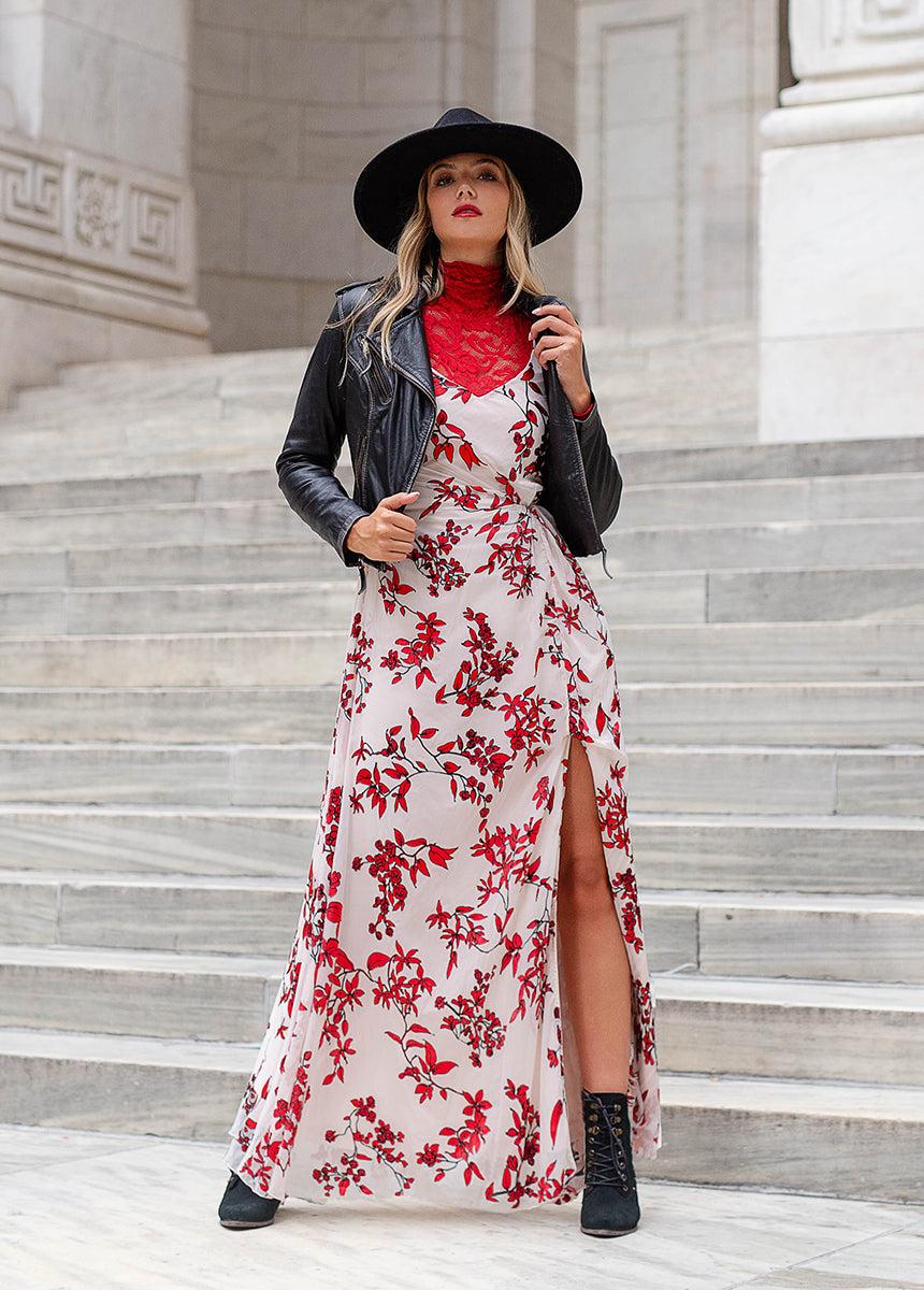 Embrace elegance with our Sathia Dress, crafted to make a stunning impression. This gorgeous dress features a luxurious velvet burnout fabric that adds depth and sophistication. The timeless silhouette is designed to flatter, providing a graceful and refined look for any special occasion. With its exquisite fabric and classic design, this dress is a versatile and enchanting addition to any wardrobe. Maxi length Leg slit V-neck Adjustable straps Draping at waist Seam at natural waist Fully lined Invisible zipper at center back with hook & eye closure 100% Polyester Hand wash only, line dry Model is 5'9 wearing an XS