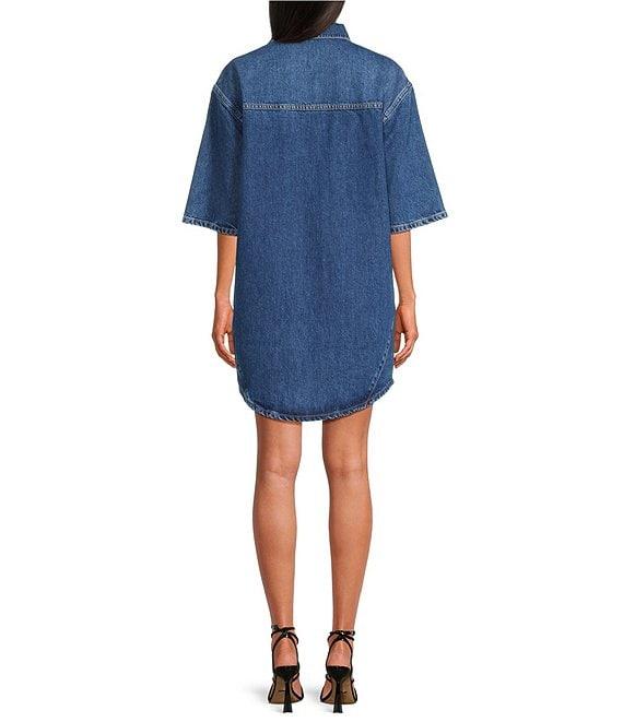 IRO Esmar Denim Collar Neck Elbow Sleeve Shirt Dress