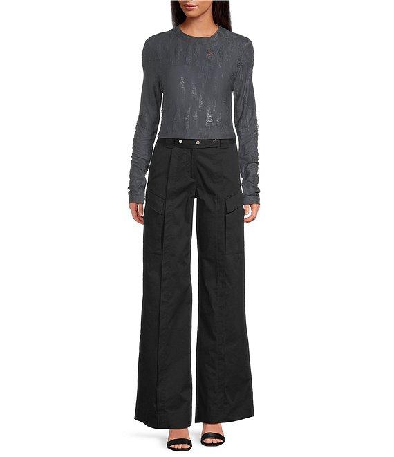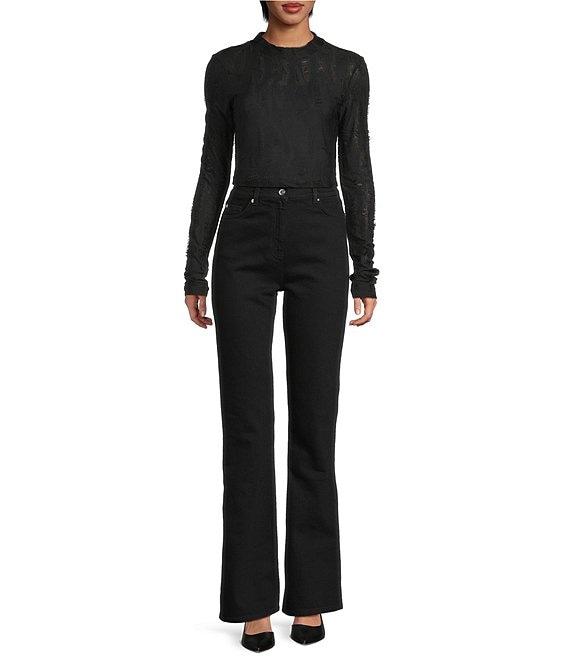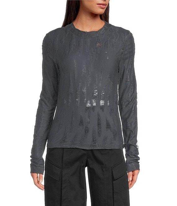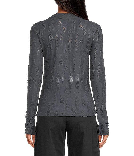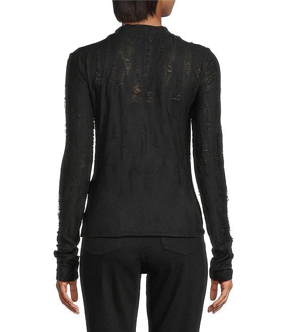 IRO Guillia Distressed Knit Jacquard Mock Neck Long Sleeve Top