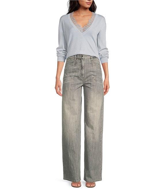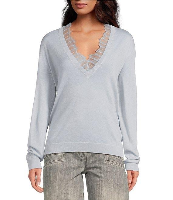 IRO Haby Fine Knit Lace V-Neck Long Sleeve Top