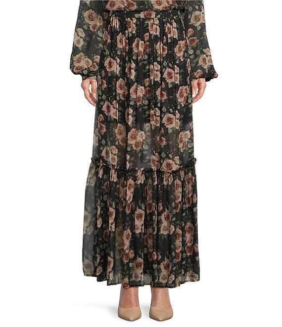 IRO Luano Coordinating Woven Floral Print Ruffle Maxi Skirt