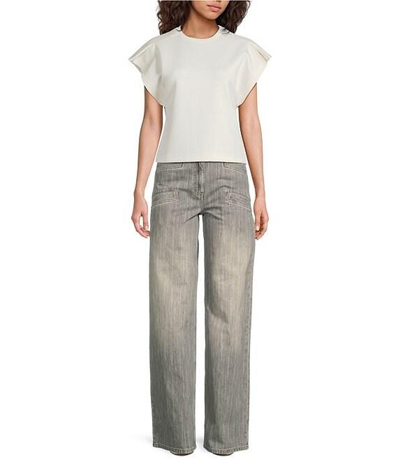 IRO Mahani Knit Crew Neck Short Flutter Dolman Sleeve Top
