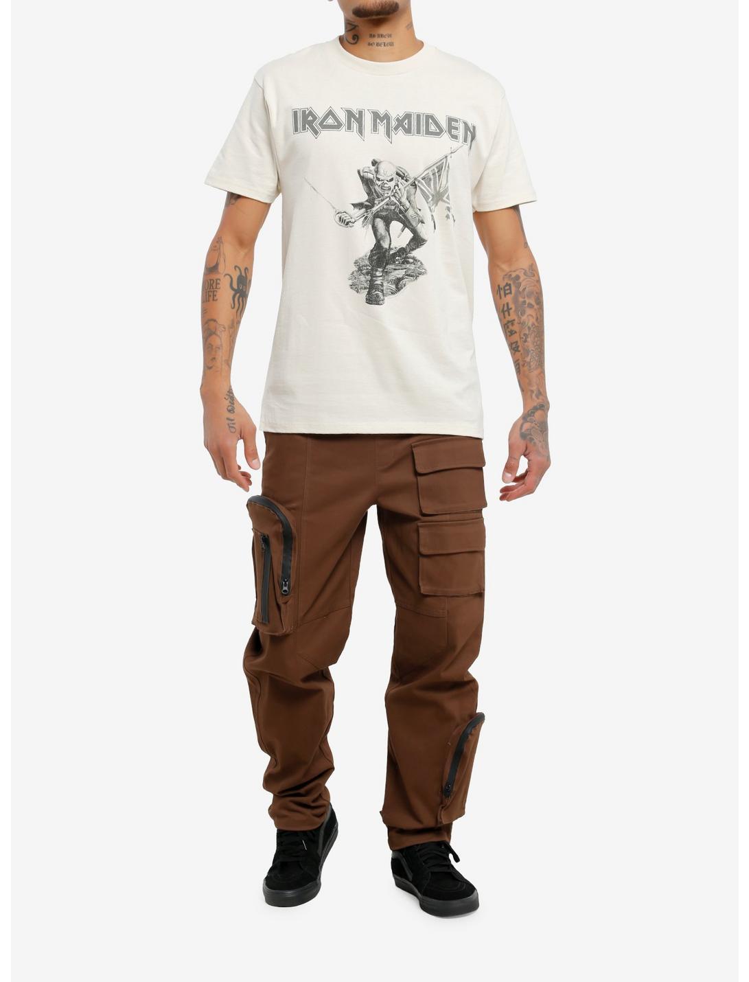 You'll take my life, but I'll take yours tooYou'll fire your musket, but I'll run you throughRep Iron Maiden's banger, "The Trooper," with this tee! It has a heavyweight fit and features a greyscale image of Eddie holding a flag and the band's name printed above.100% cottonWash cold; dry lowHeavyweightImportedListed in men's/unisex sizesModel is 6'1''Model wears size Medium