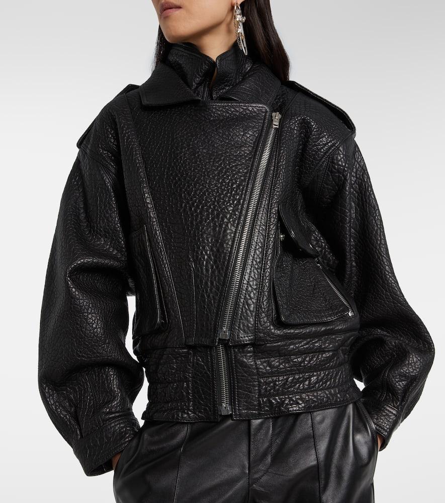 Shop Isabel Marant Aneli Double-collar Leather Bomber Jacket In Black from 800+ stores, starting at $2240. The Aneli Jacket By Isabel Marant, Crafted From Supple Lambskin Leather, Blends Utility-inspired Details With A Modern Cropped Ball-shaped Silhouette. A Double Shirt Collar, Snap-fastened Shoulder Tabs And Multiple Gusseted Pockets Add Structure And Functionality, While The Zip Closure And Elasticated Waist Ensure An Effortless Fit. Fully Lined, This Piece Delivers Contemporary Attitude With Refined Craftsmanship. Double Shirt-style Collar Snap-fastened Shoulder Tabs Straight Cuffs With Snaps Front Zip Closure Zippered Pocket And Gusseted Flap Pocket Gusseted Chest And Side Pockets Elasticated Waist Cropped Ball-shaped Cut Fully Lined Alessandra Is 1,75 M And Wears Size 38