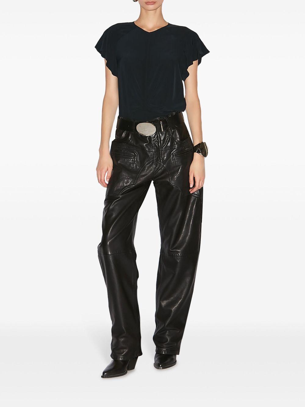 Shop Isabel Marant Tullya Viscose Ruched Detail T-shirt In Black from 800+ stores, starting at $198. Fabric: Lightweight, non-stretch chiffon. Ruched detail at front. Crew neck. Flutter sleeves. Hidden zip at back. Shell: 100% viscose. Dry clean. Imported, India. Measurements: Measurements from size 34 Length: 21.25in / 54.0cm, from shoulder