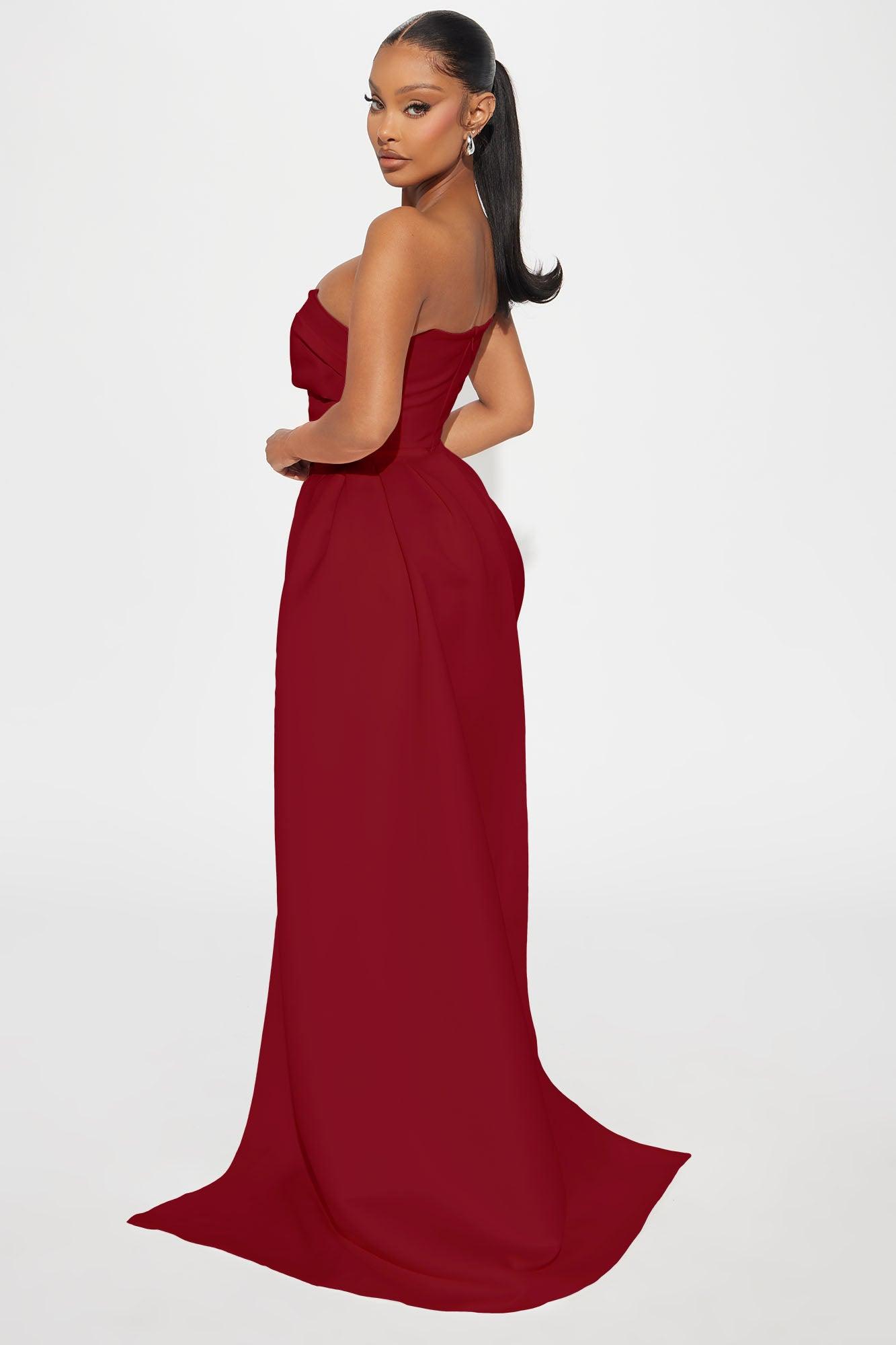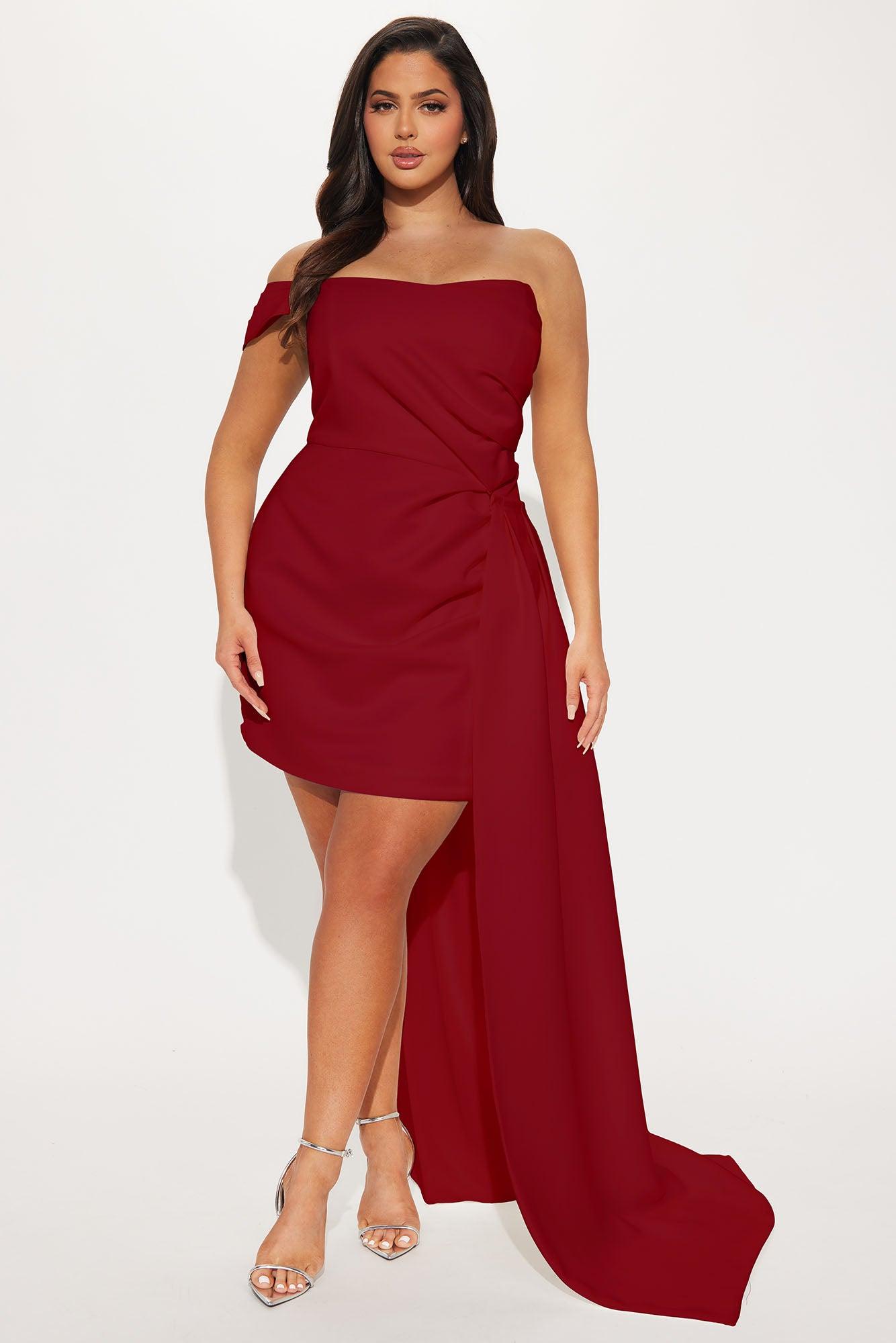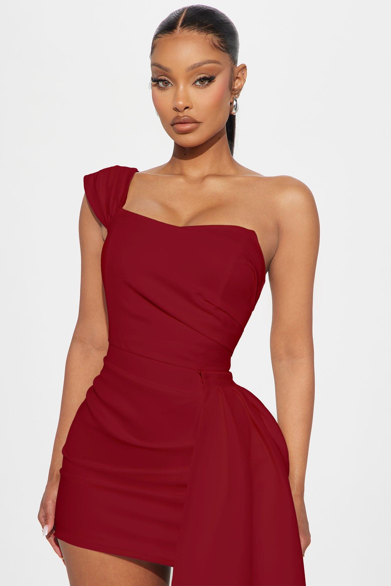 Isabella Removable Train Satin Mini Dress - Wine Female