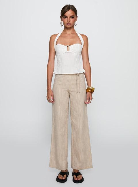Halter buckle top Ruched bust detail, silicone lining inside bust, invisible zipper on side, shirred panel at back, adjustable halter straps, slim fit Partially stretched, lined bust Princess Polly Lower Impact Main & Lining: 100% reclaimed cotton Cold hand wash