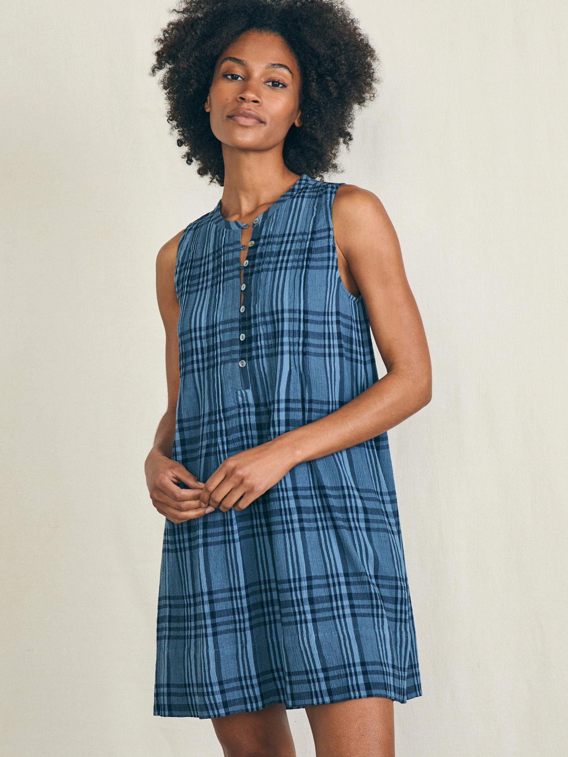 Hands down our #1 bestselling dress, the Isha is in a league of its own. Delicate pintucks keep it slim through the bodice, while the airy and lightweight fabric drapes with just enough swing to give it a little retro flair. This is a serious warm-weather staple with max casual-cool vibes. Fit: Classic fit. Length: 35" Detail: Pintucks at bodice and at center back. Half placket with shell buttons. Hidden Side Entry Pockets. Dress is fully lined. Material: 100% Organic Cotton, Agoya Shell Buttons Model: Gabrielle is 5’9 wearing size Small Care: Close all fastening before wash. Turn inside out. Machine wash cold with like colors WDU2456-WYP