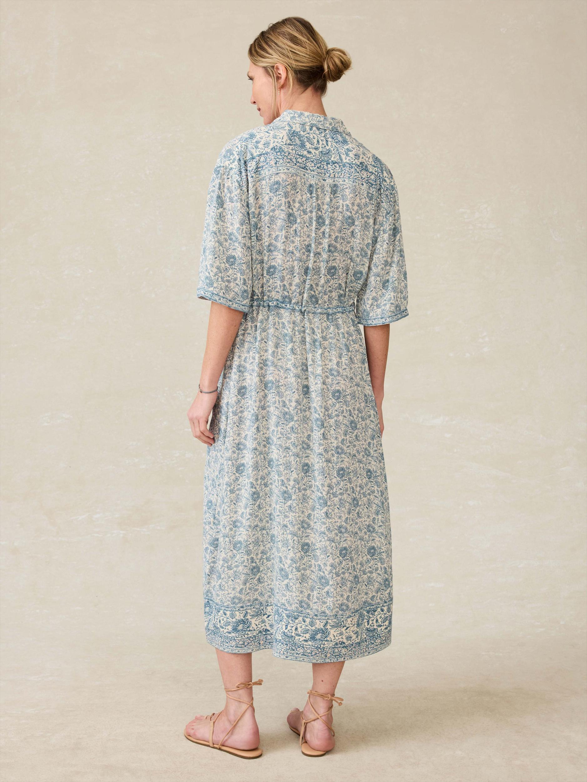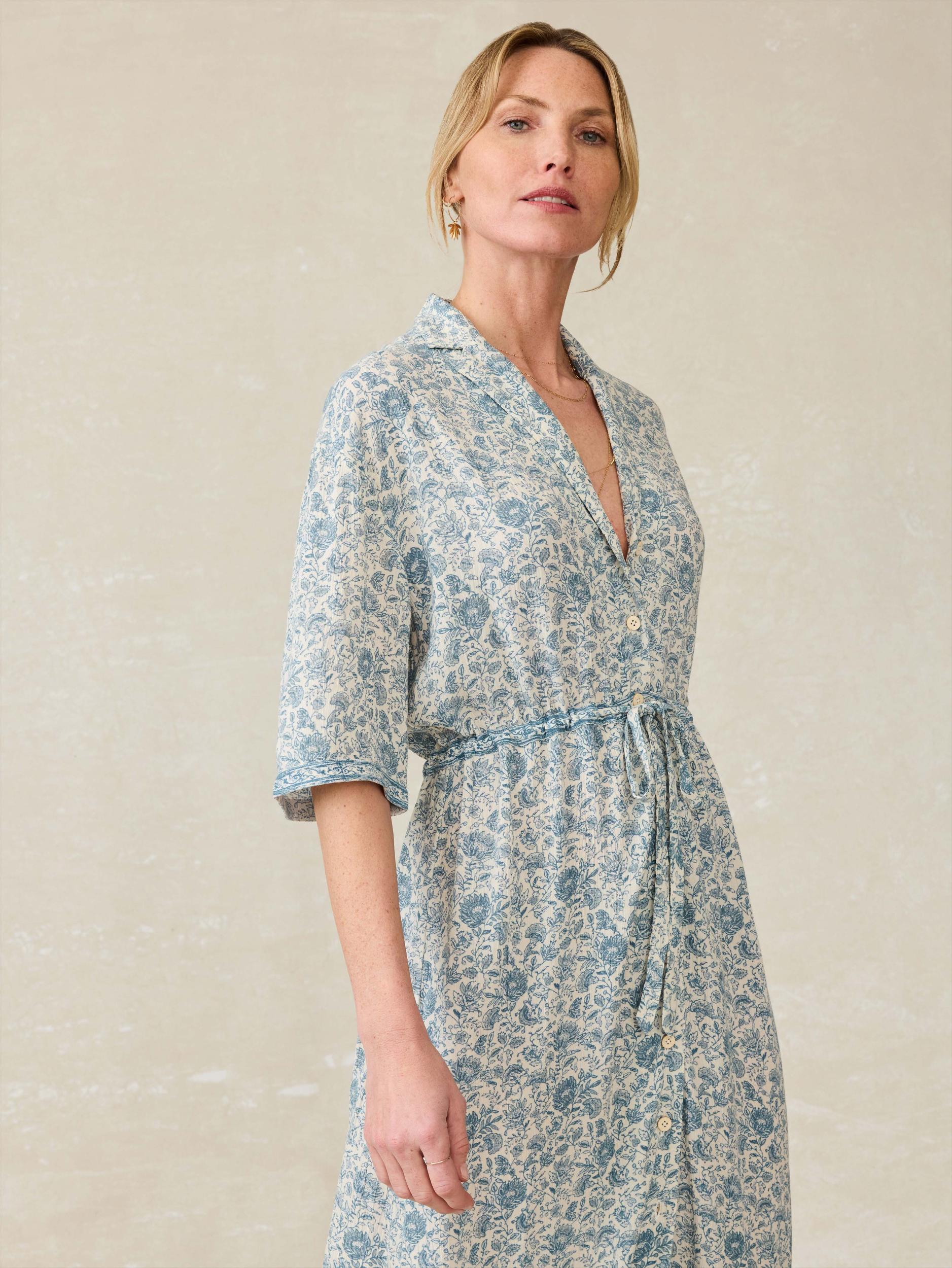 A vintage-inspired floral gives this timeless dress a summer-ready vibe, perfect for both casual days and special celebrations. Designed with a flattering figure-skimming fit in a luxurious-feeling silky viscose, it makes looking polished feel refreshingly simple. Fit: Relaxed Fit, Length: 50" Detail: Camp collar dress with shell buttons. Tunnel with adjustable self tie at waistband Material: 70% LIVA Reviva™ Viscose, 30% Circulose® Viscose Model: Edda is 5'10 wearing size Medium Care: Close all fastening before wash. Turn inside out. Machine wash cold with like colors. Delicate cycle. Do not bleach. Tumble dry low. Remove promptly. Cool iron when needed. WDS2526-UWF
