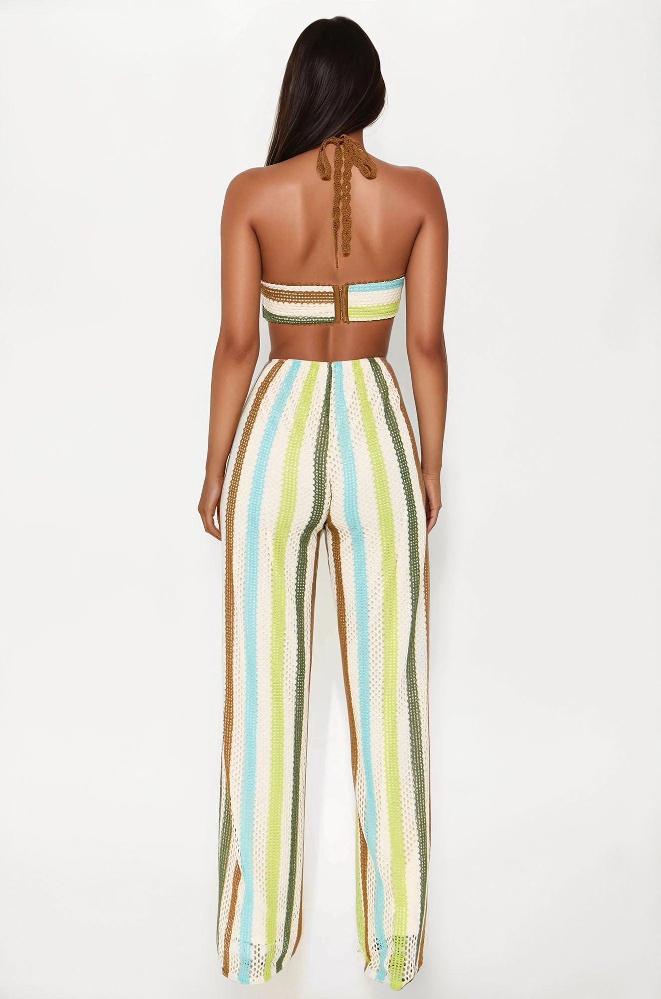 Island Getaway Crochet Halter Jumpsuit - Brown/combo