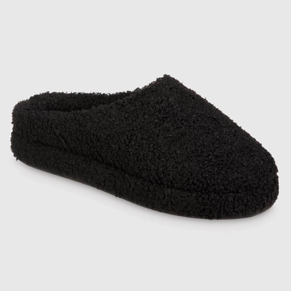 Make the right choice for you and the planet. Your favorite isotoner slippers are going green with recycled fabrics you can feel good about. The recycled fiona berber hoodbacks are sure to keep your feet cozy during chilly winter evenings. The cushioned memory foam molds to your foots shape for a custom fit. Care instructions: Machine wash in cool water, dry flat away from heat. Color: Black. Gender: female. Age Group: adult. Pattern: Solid.