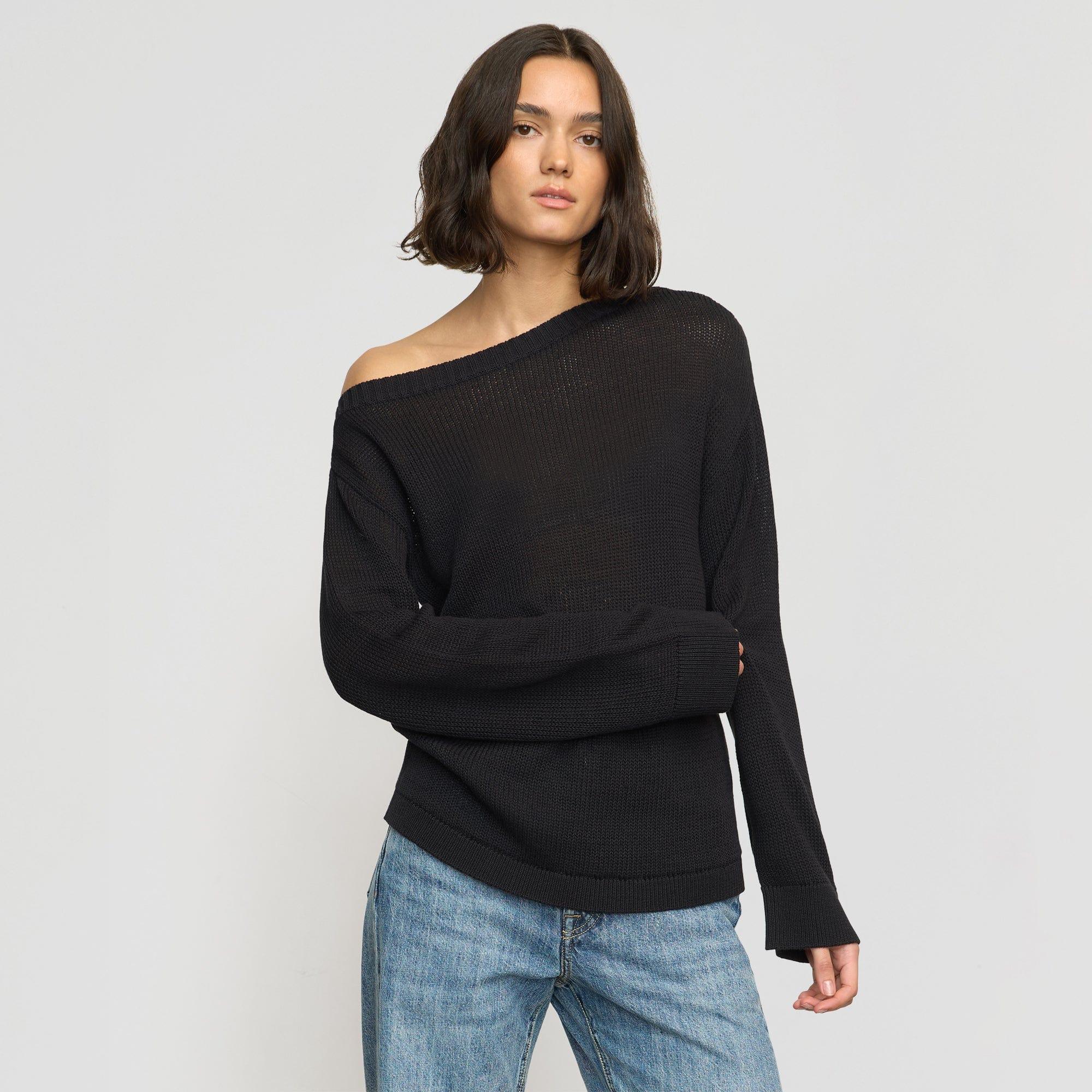 Our go-to, off-shoulder sweater gets a breezy seasonal update with this cooling organic cotton version. This breathable, lightweight knit is the perfect layer over a swimsuit for a day at the beach, or over your favorite dress as the evening cools down.