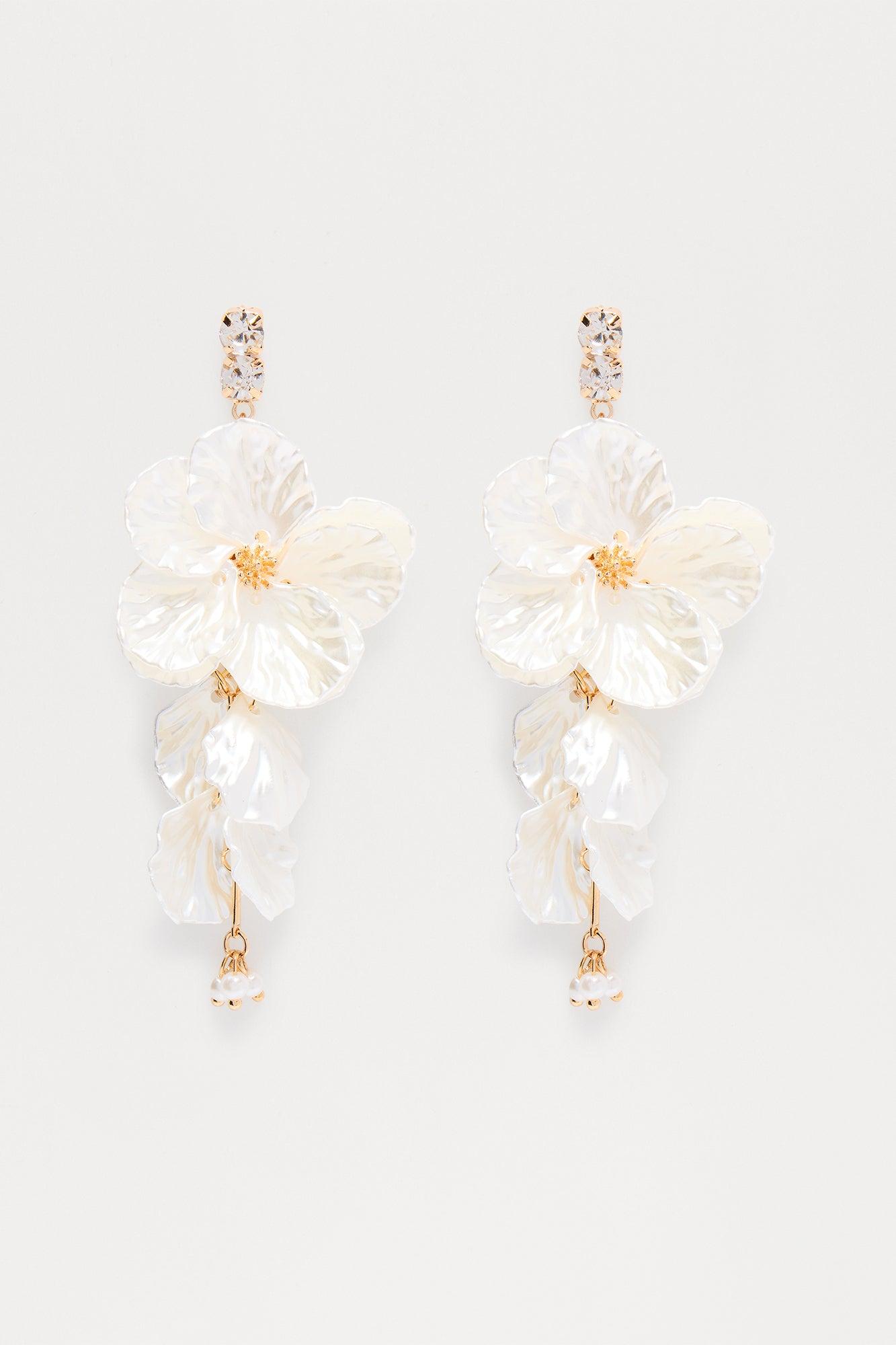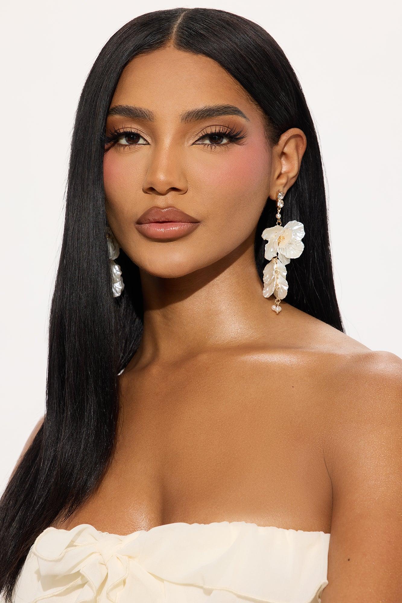 Available In White. Earrings Drop Floral Detail Faux Pearls Post Back Closure Final Sale Imported