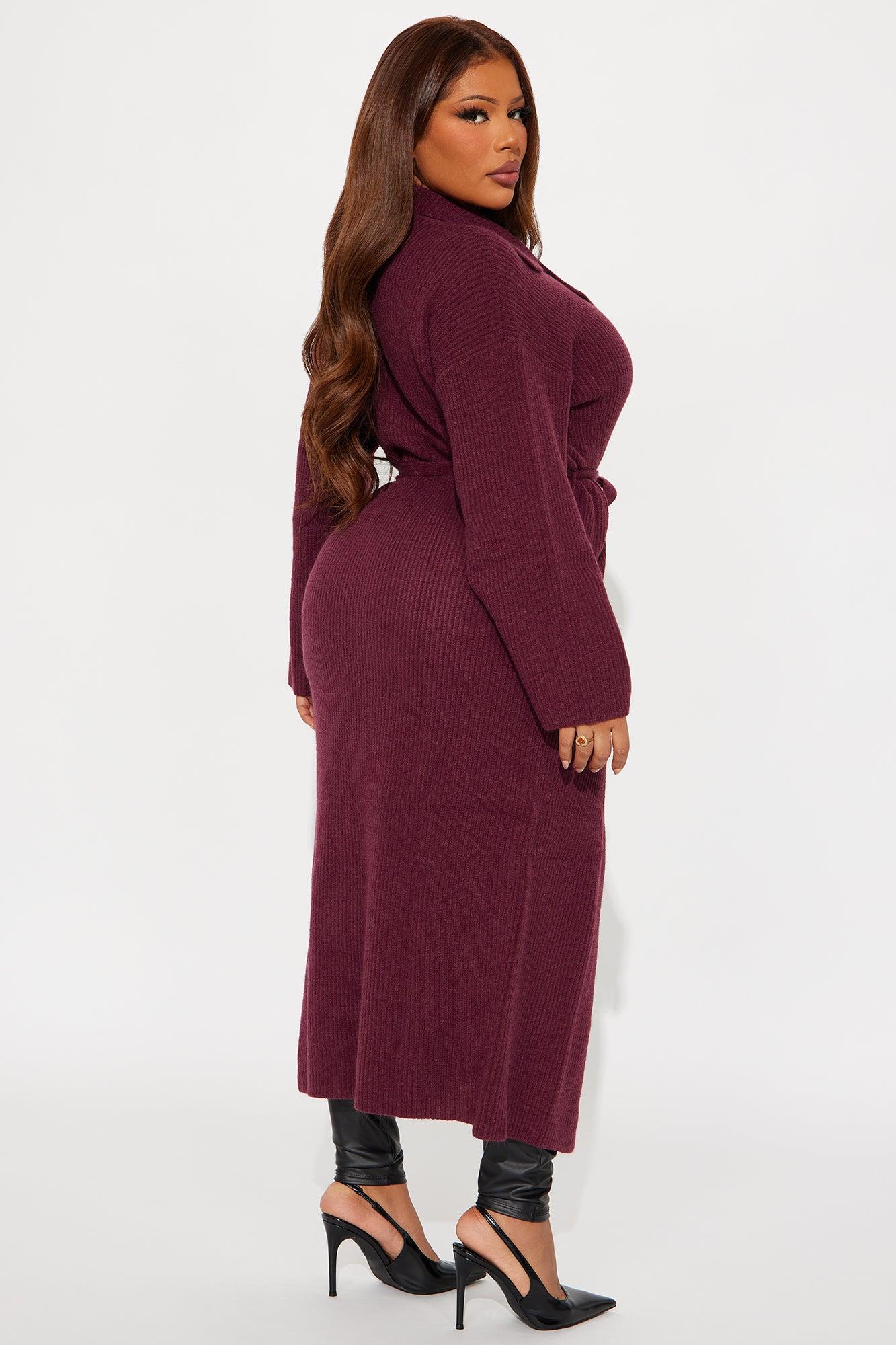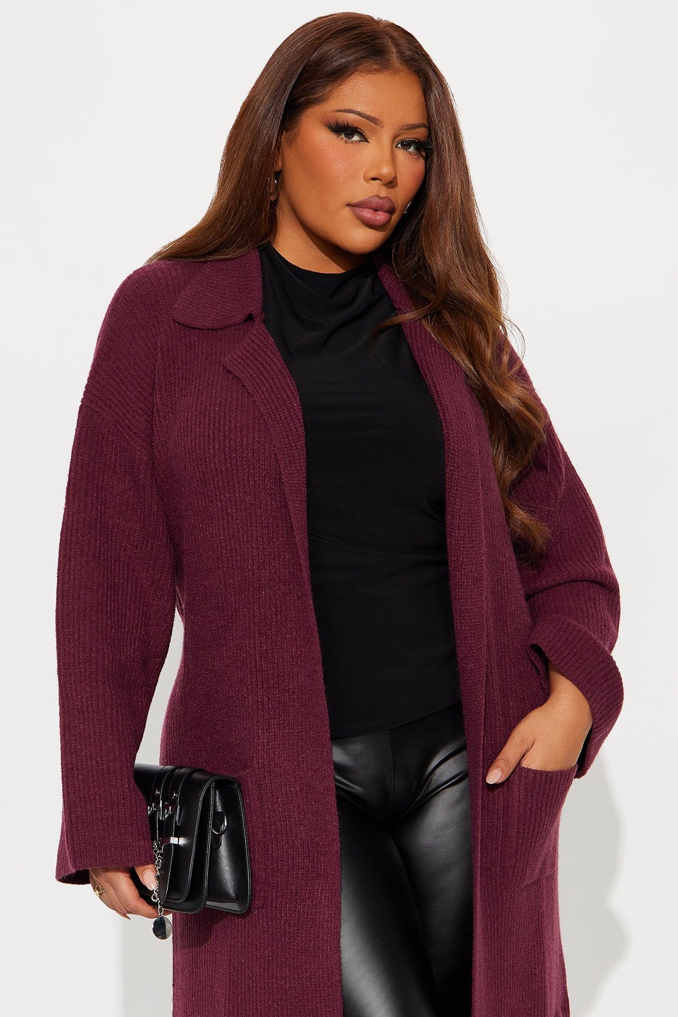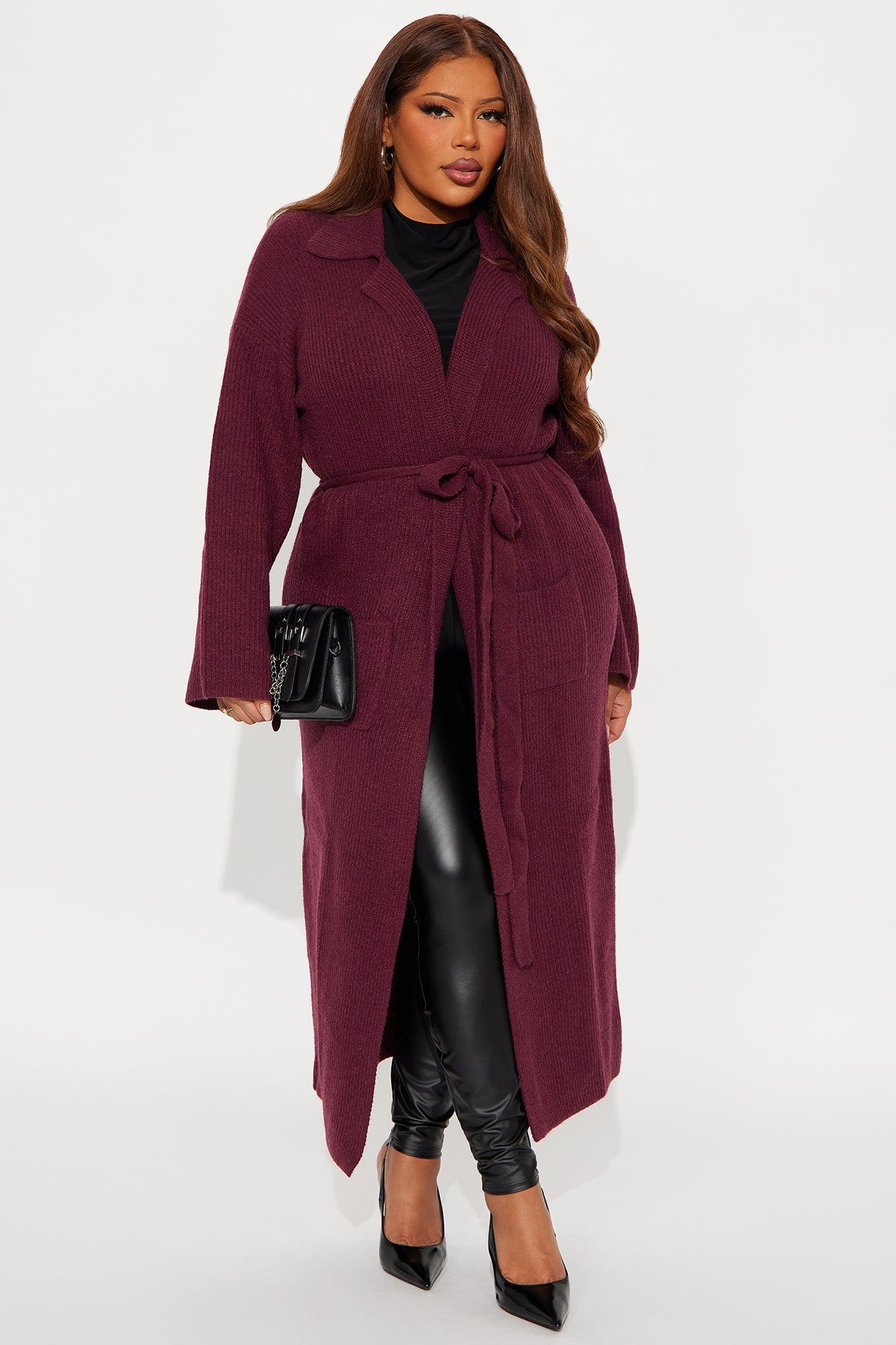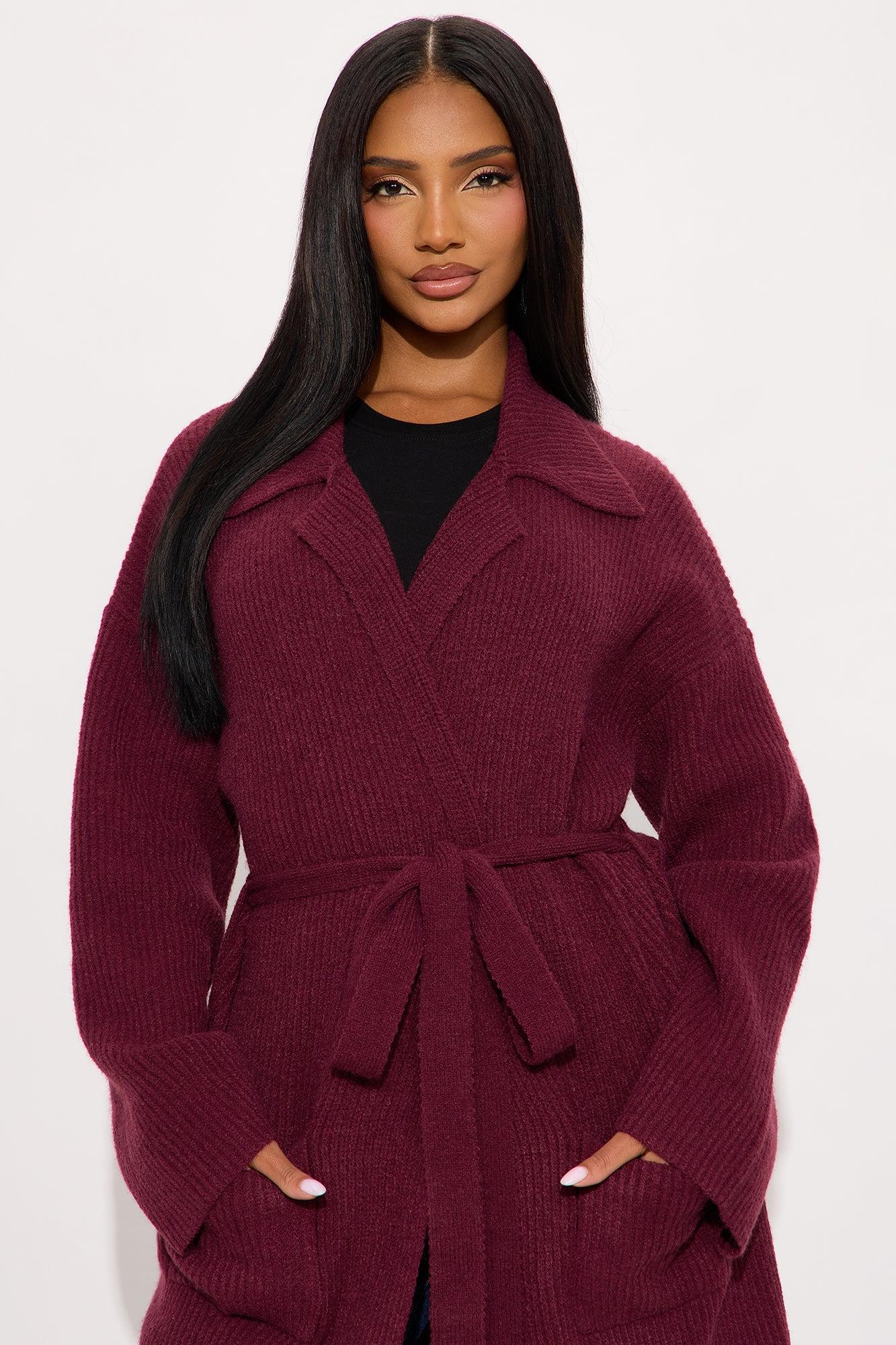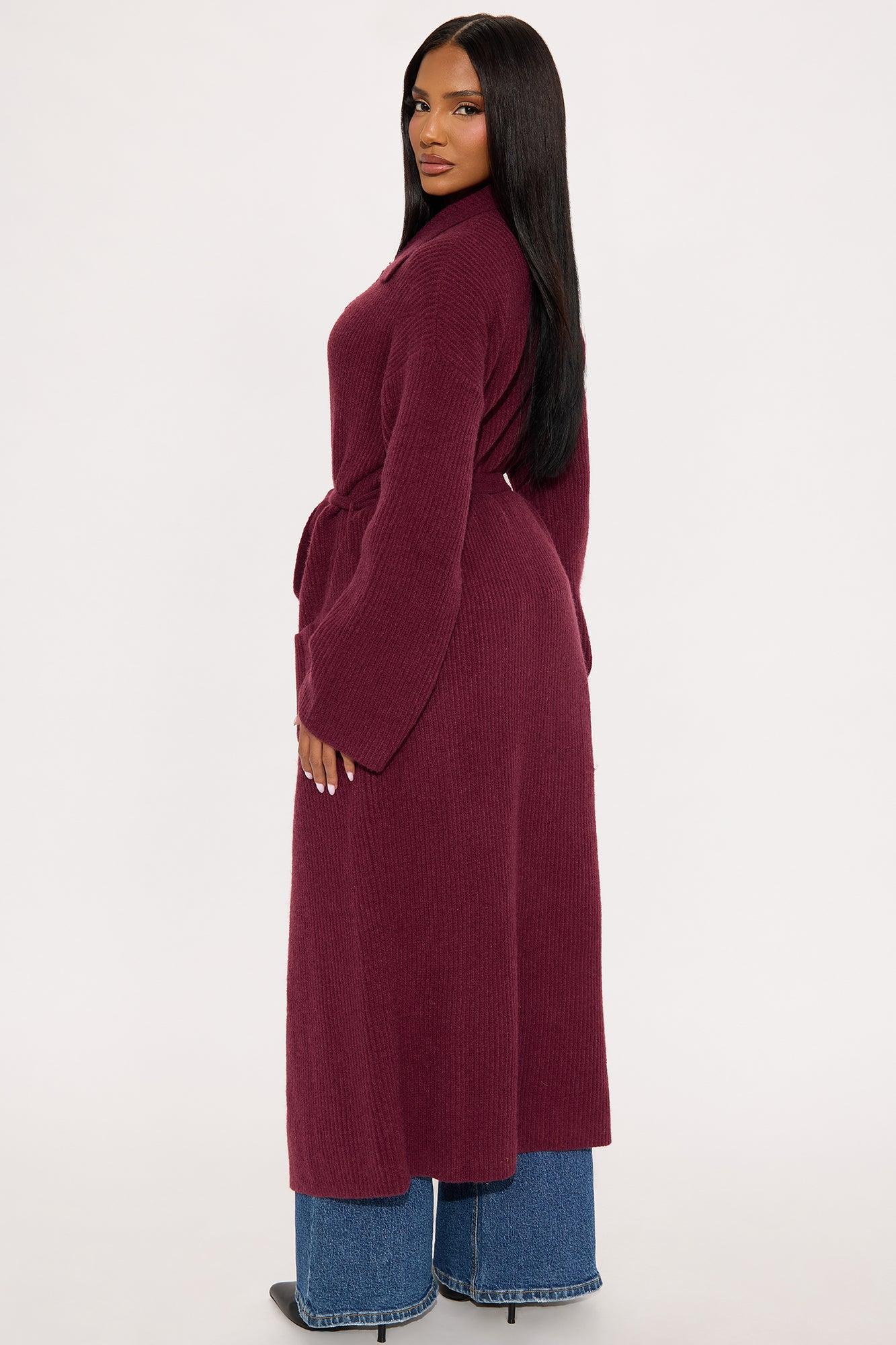 It's Only Fair Belted Long Cardigan - Wine