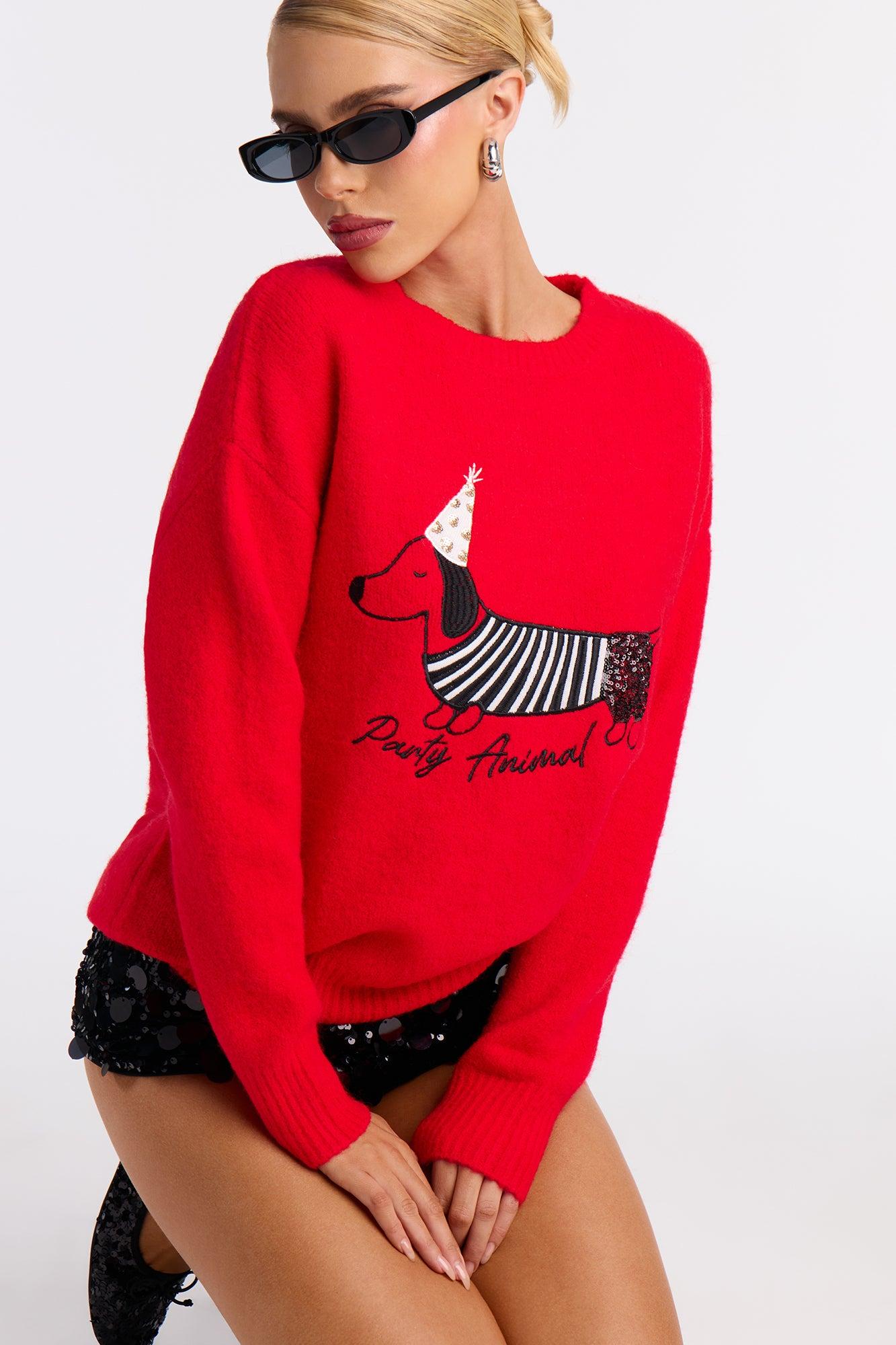 It's Pawty Time Sweater - Red/combo Female