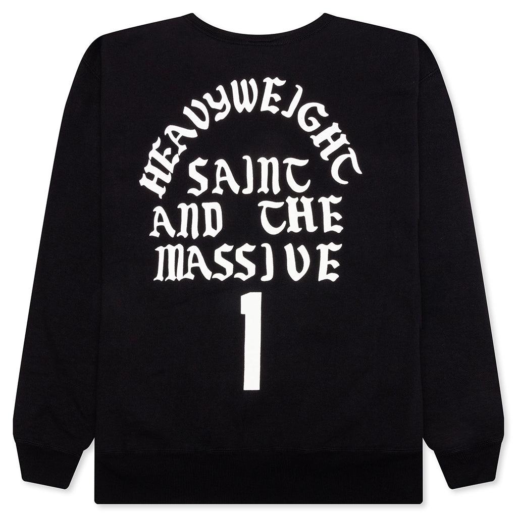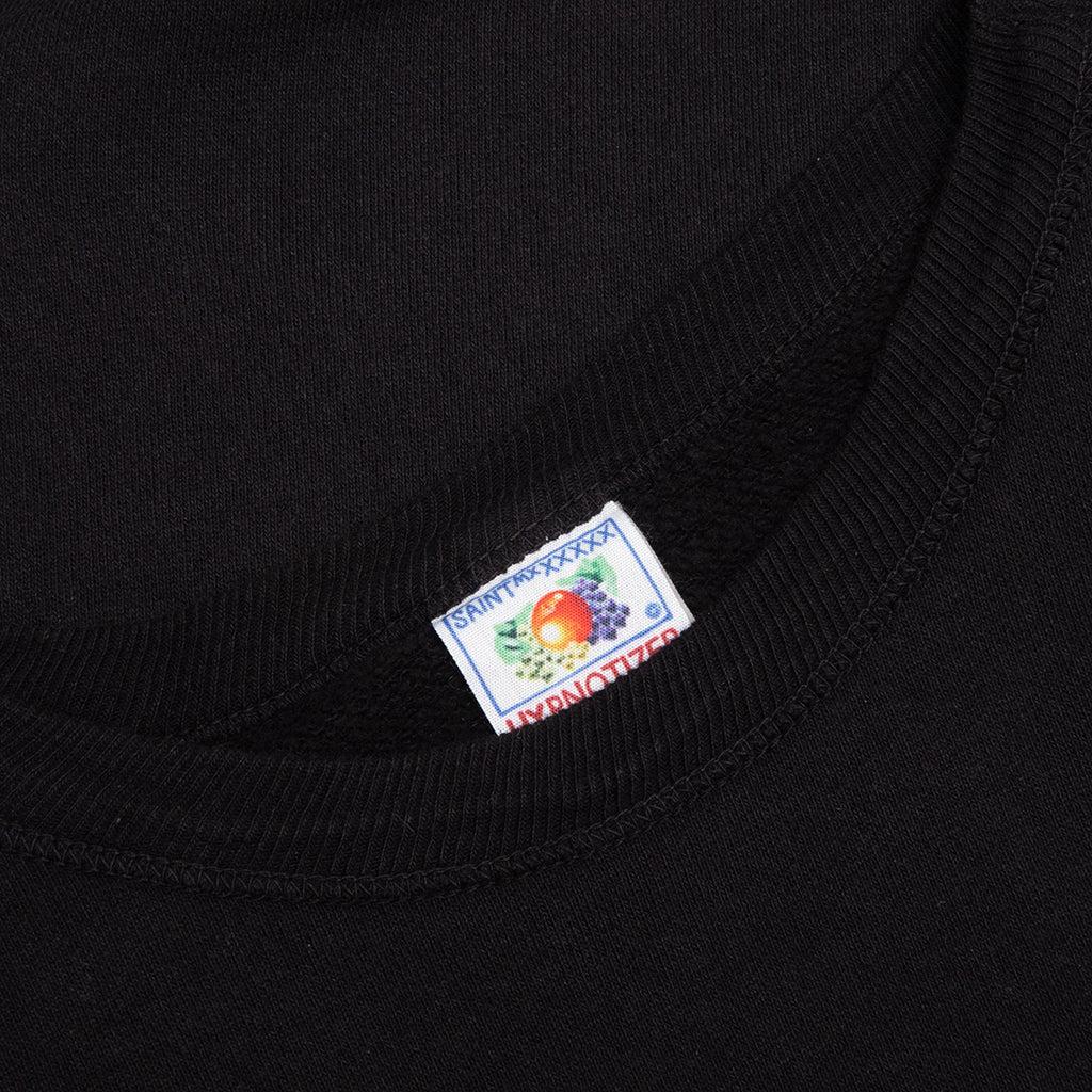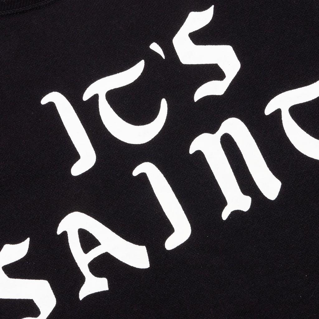 The It's Saint Crew Sweater in Black is crafted from cotton, featuring a jersey texture with a vintage wash for a relaxed, worn-in look. Logo prints on the front and rear add a bold statement, while ribbed cuffs and hem ensure a polished finish. 100% Cotton Jersey texture Vintage wash Logo print to the front and rear Ribbed cuffs and hem Style No: SM-YS1-0000-028